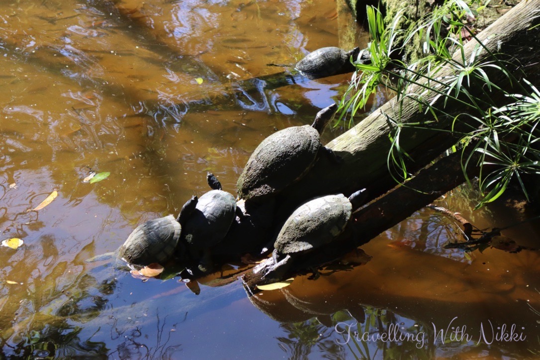 Once inside Ardastra you are free to go wherever you want so you can simply follow the shaded paths through the palm trees and the tropical gardens full of flora and fauna on a self guided tour to see all of the different birds and animals that call Ardastra Gardens home. I loved spotting the turtles sitting on the rocks next to the water enjoying the Bahamian sunshine.