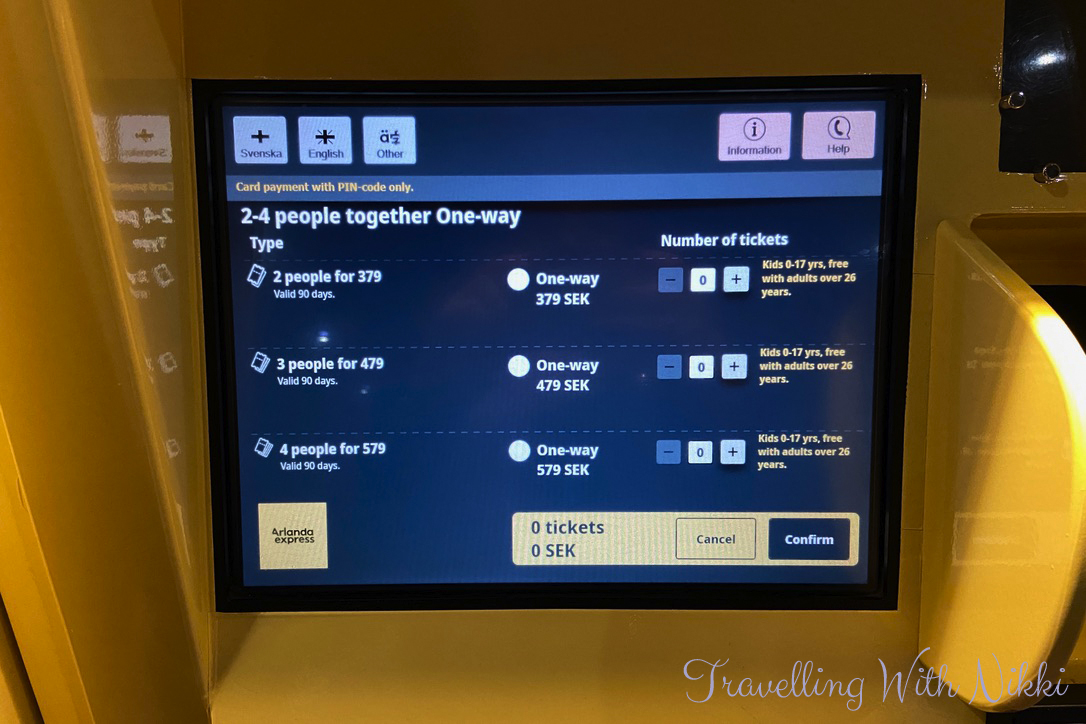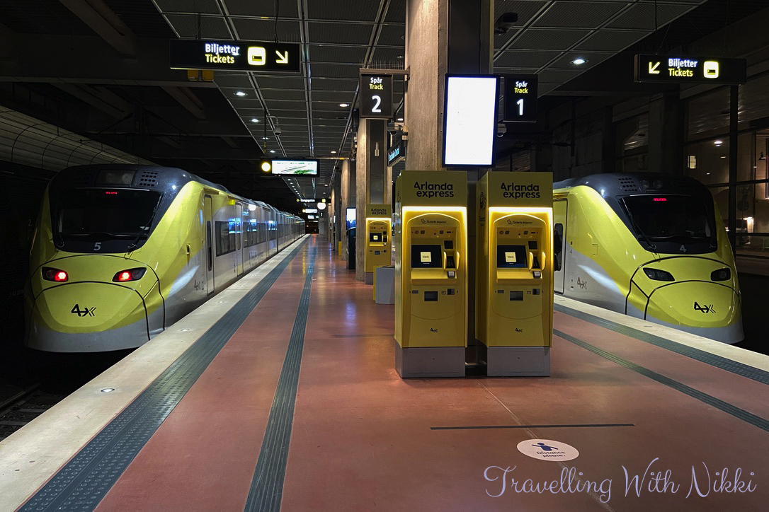 When arriving at Stockholm Airport, follow the signs for the “Express Train to Stockholm City”. There are two stations at the airport for the Arlanda Express – Arlanda South (Terminals 2, 3 and 4) as well as Arlanda North (Terminal 5). There are ticket machines located in the arrivals halls as well as on the platforms themselves. As already mentioned you can also purchase train tickets on the Arlanda Express app which we did (it is the same price as using the ticket machines) and both options are incredibly easy to use.