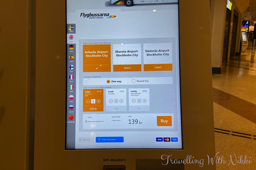 There are ticket machines available (card payment only) in the arrivals hall at the airport as well as at Cityterminalen. However buying tickets from these machines is more expensive than buying via the app or on the Flygbussarna website so make sure to download the app or purchase your tickets online in advance before you arrive in Stockholm. At this time tickets cannot be purchased from the driver once onboard.
