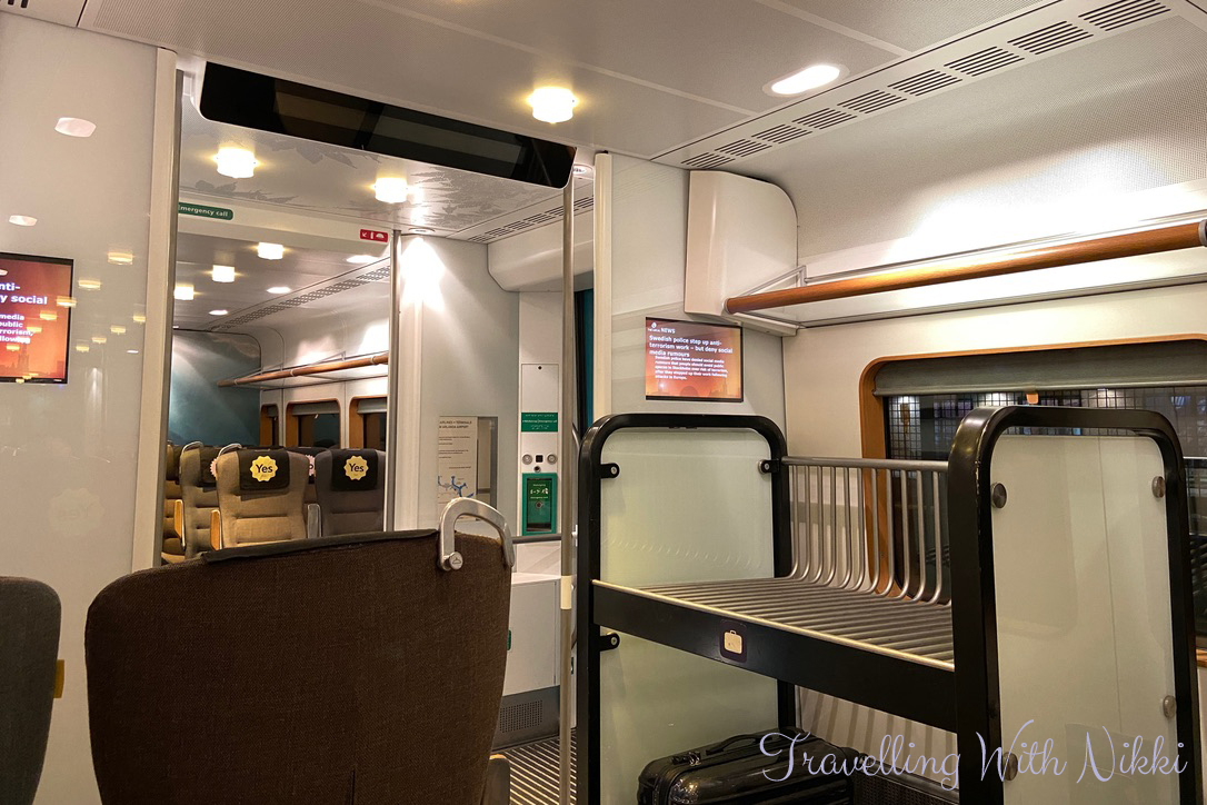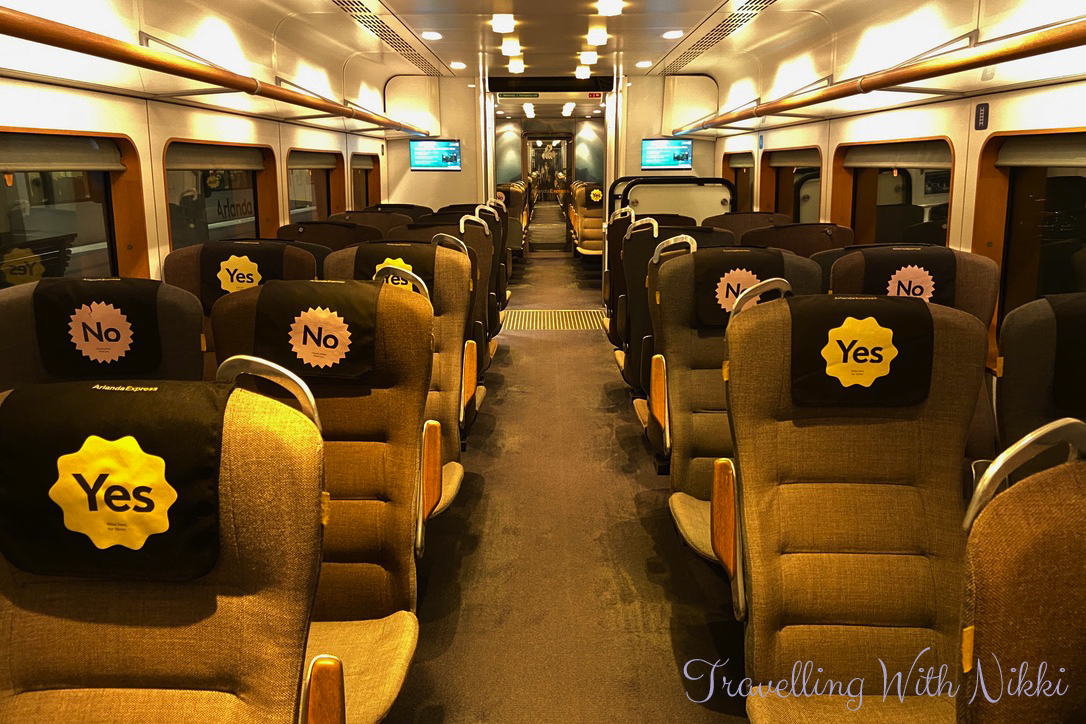 There is plenty of luggage space onboard the Arlanda Express and currently every other row of seats is blocked to allow for social distancing.
