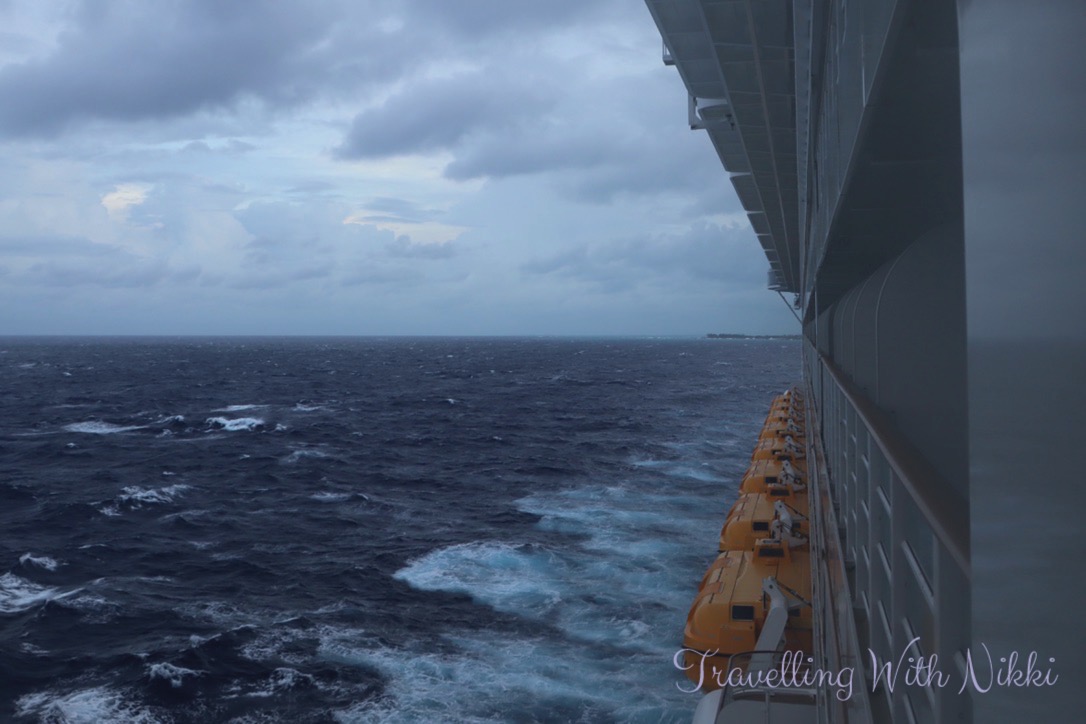 When I woke up at 7:00am and walked out onto our verandah, the weather that morning was not good and the sea was a little rough although thankfully we could not feel any movement on the ship at all. I could just about see Castaway Cay behind us in the distance so immediately guessed that we had another day at sea to look forward to. After getting a cup of tea for both of us (and once again hearing “Almost There” playing in the corridor which I always seem to hear at the most fitting times), I turned on the “Good Morning Disney Dream” show on the television and was immediately confused as they were talking about not being able to dock at Castaway Cay that day before finishing the show with “Enjoy exploring the island!” Because of this we did wonder if we were going to make another attempt to dock there later in the morning if the weather improved.