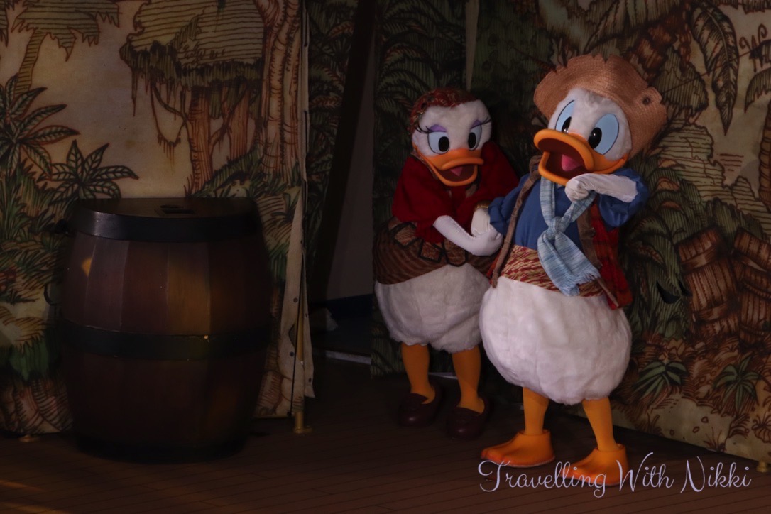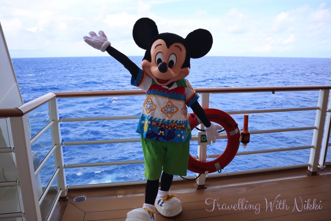 All of the characters were wearing their Castaway Cay beach outfits which you never usually see onboard (as they only wear these outfits on the island) so again we took this as a positive and a new experience as it was something that you do not usually see. There were characters everywhere you looked that morning and we started by meeting both Mickey followed by Minnie who were at Preludes.