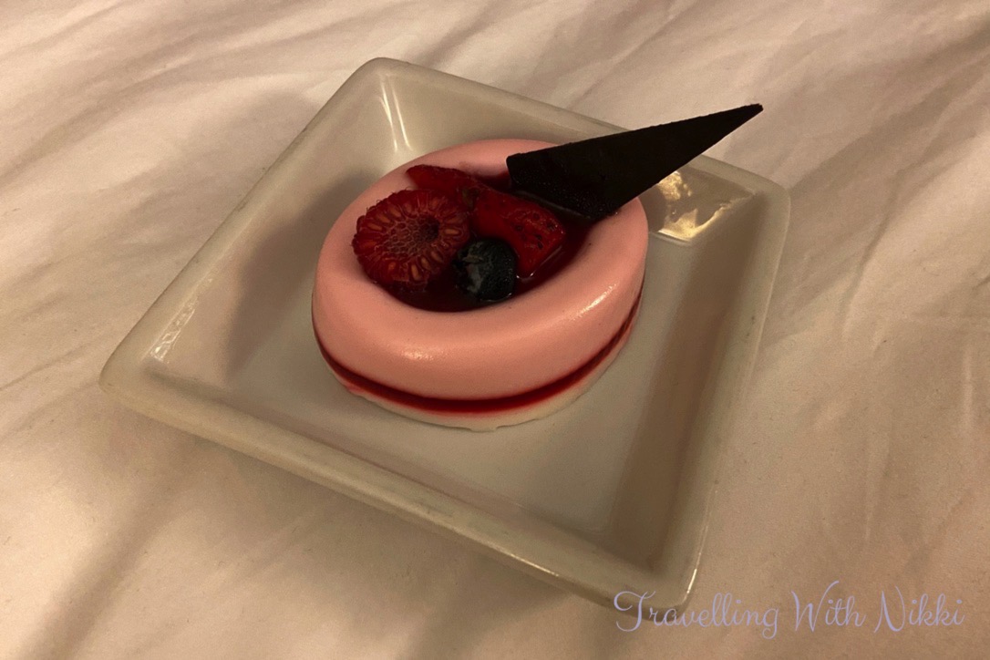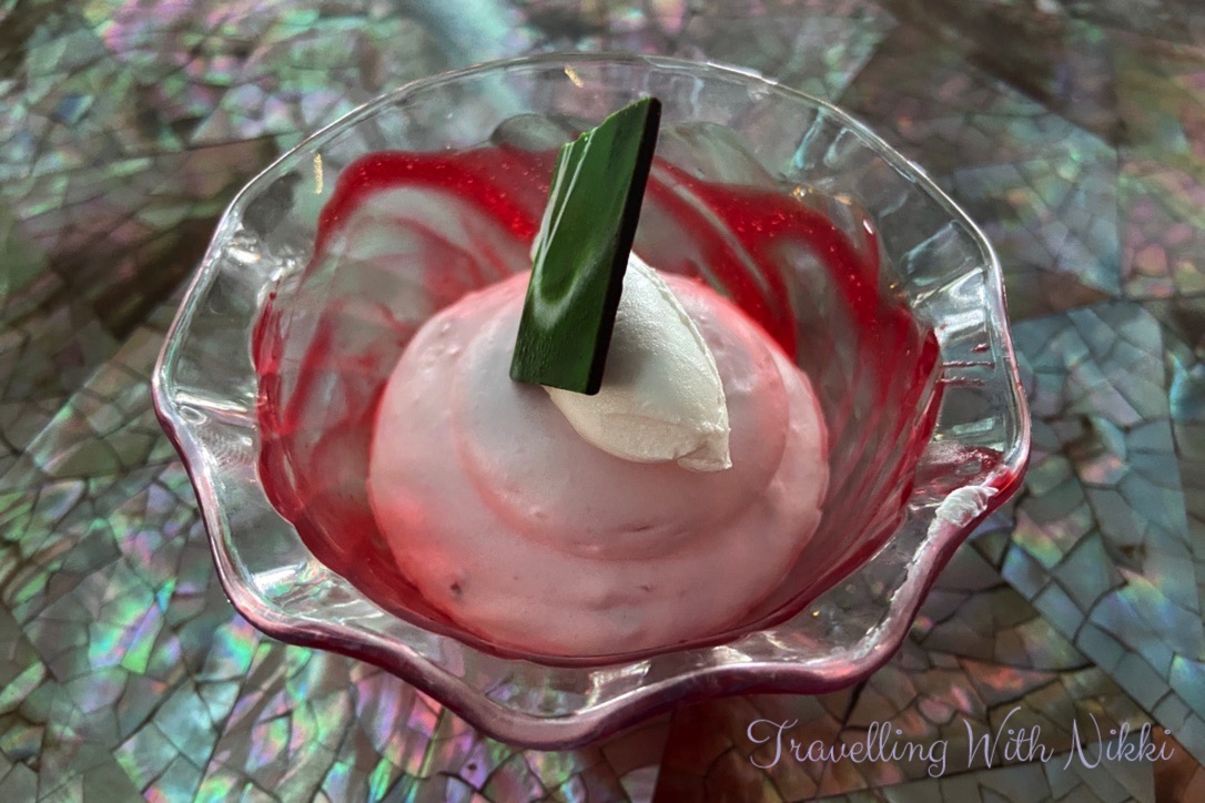 The Pirate Night buffet had already started in Cabanas when we arrived and even though there was no line to get in, it was very busy and crowded inside. It took a while to get past everyone wanting baked potatoes, crepes and turkey legs before I reached the dessert station to get to the Strawberry Panna Cotta which I love so much.