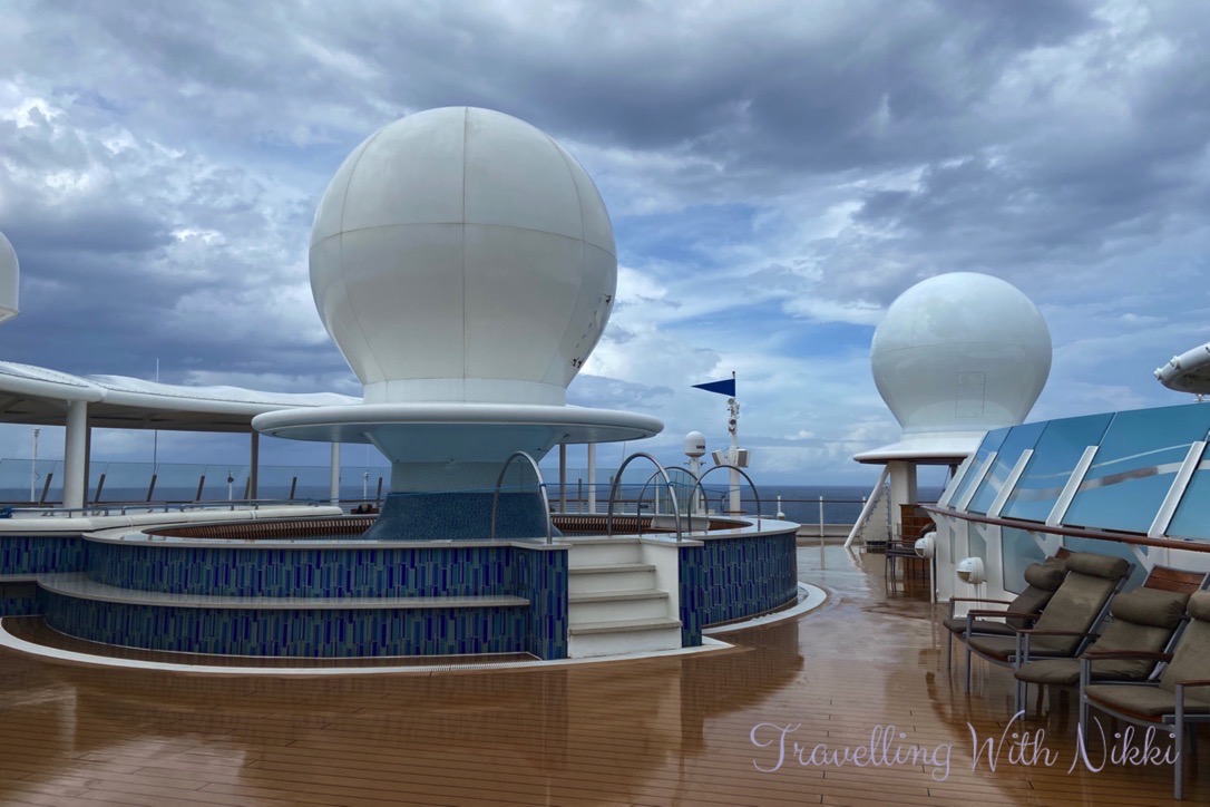 After having a light lunch we noticed that all of the swimming pools had been closed due to the weather. It seemed that for the rest of the afternoon, as soon as we found some good weather and sunshine, the clouds, rain, thunder and some lightning very quickly caught up with us. This is the third cruise that we have done at the end of September and the first with weather like this so I think we were just very lucky those other times.