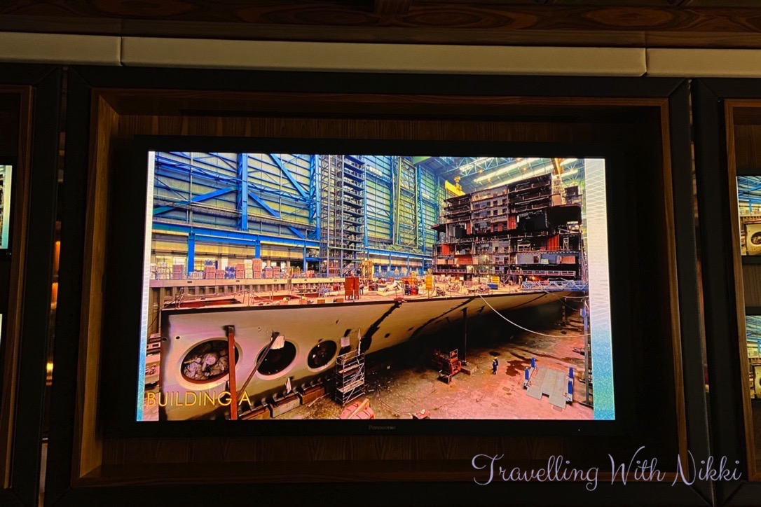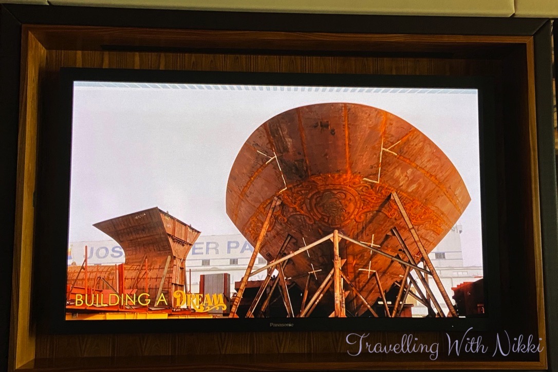 Dominique was our brilliant host who played a video and showed photos from the construction of the Disney Dream before talking about the evolution of the ship design from the older Disney Magic and Disney Wonder. She also told us that there are two replicas of the Disney Dream keel coin located in Pub 687 – one is above the bar and the other is located just behind the door where you enter.
