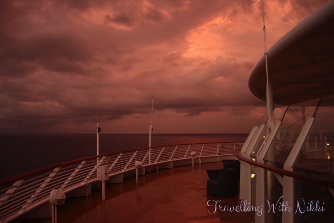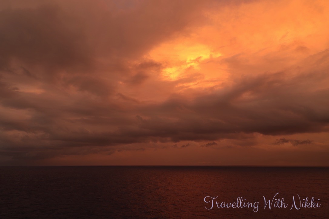 Thankfully the rain had finally stopped when we walked up to Deck 13 just after 7:00pm and I was so happy that we decided to go outside when we did as the sky was simply breathtaking. It really looked like it was on fire and I have never seen anything like it before in my life and the pink and orange colours were surreal and dream-like. We spent the next fifteen minutes just walking around the open decks in awe taking photos. Seeing that incredible sky that evening is one of my favourite memories from this cruise.