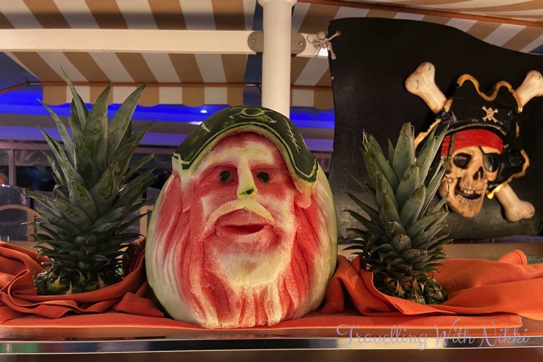 I was really looking forward to watching the Mickey’s Pirates IN the Caribbean deck party at 7:45pm even though I had already wondered if it would go ahead due to the weather that we had been experiencing all afternoon.