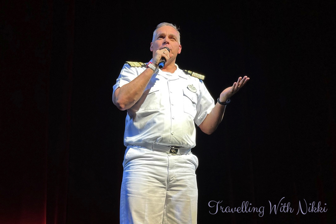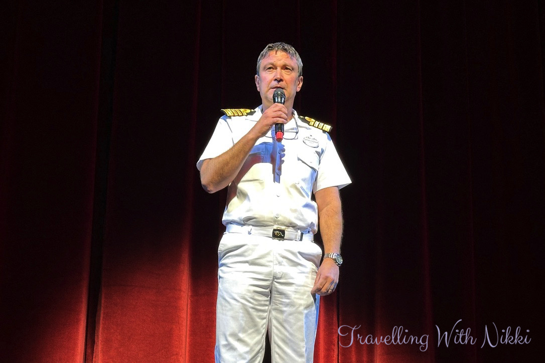 Anthony then introduced Captain Zvonimir who talked about the three new ships – the Disney Treasure, Disney Destiny and Disney Adventure – that would be joining the Disney Cruise Line fleet in the next year and that the Disney Treasure would be closely following our path across the Atlantic a few days later as she would be leaving Europe and heading over to her new homeport of Port Canaveral. He spoke about the Disney Wonder in Australia and how there would be fourteen Disney ships by 2032. He finished by talking about the brand new Lookout Cay at Lighthouse Point that opened in June 2024 where the Disney Dream was due to dock for the very first time the following week on our cruise before arriving into Florida and that he was also excited to get there as it would be his first visit too!