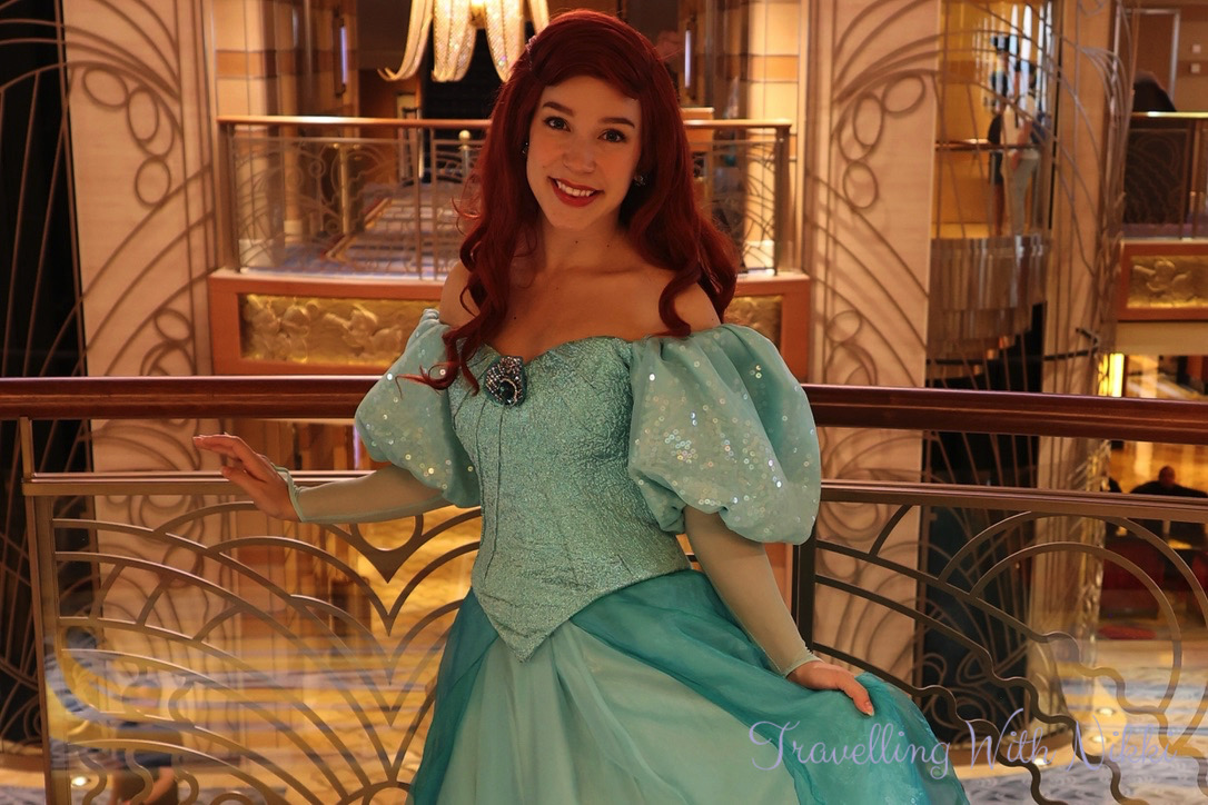 We decided to walk a few laps of Deck 4 to get some fresh air and as we strolling back through the Lobby Atrium we met Ariel who was out for an unscheduled meet and greet.