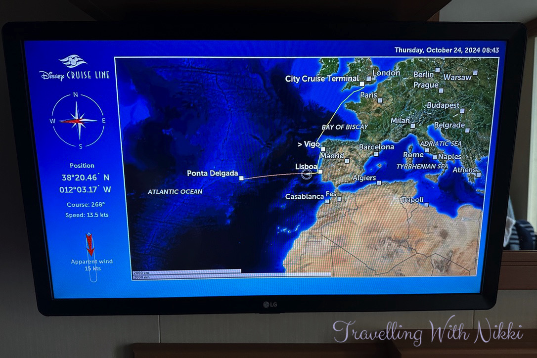 After another good night’s sleep onboard the Disney Dream, I woke up just after 7:00am feeling great knowing that we had very little plans for our day at sea ahead. I absolutely love longer cruises with lots of sea days just like this (we have now done three long cruises of ten nights or more over the years) and it felt wonderful to know that we had a day of nothing but relaxation as my legs were still hurting after two days of walking around exploring both Vigo and Lisbon. Thankfully since we had left Lisbon the evening before, the seas had been calm as we sailed out into the Atlantic towards Ponta Delgada in the Azores.