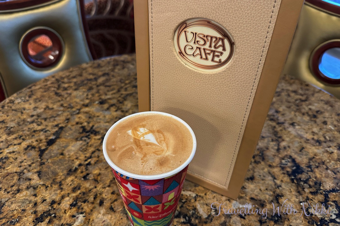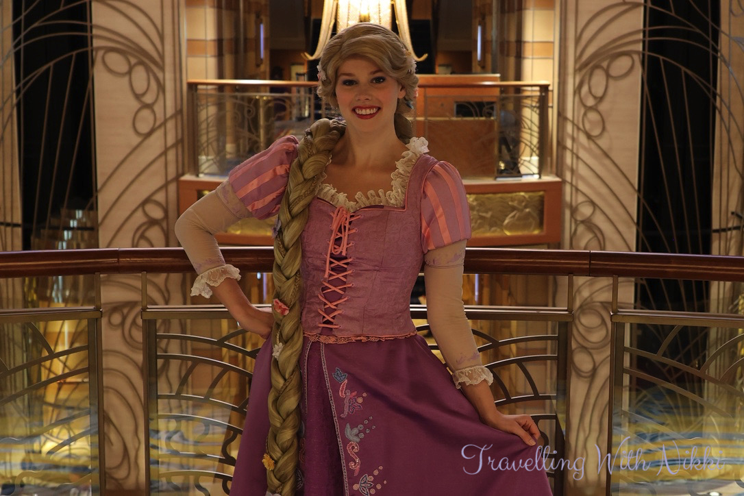 Once we got dressed, we walked down to Vista Cafe on Deck 4 to get a coffee to start off the day before heading over to the hallway of the Lobby Atrium on Deck 3 to meet Princess Minnie Mouse at 9:00am and Princess Daisy Duck at 9:30am as well as Rapunzel who was hanging out on the Deck 4 balcony during that time too.