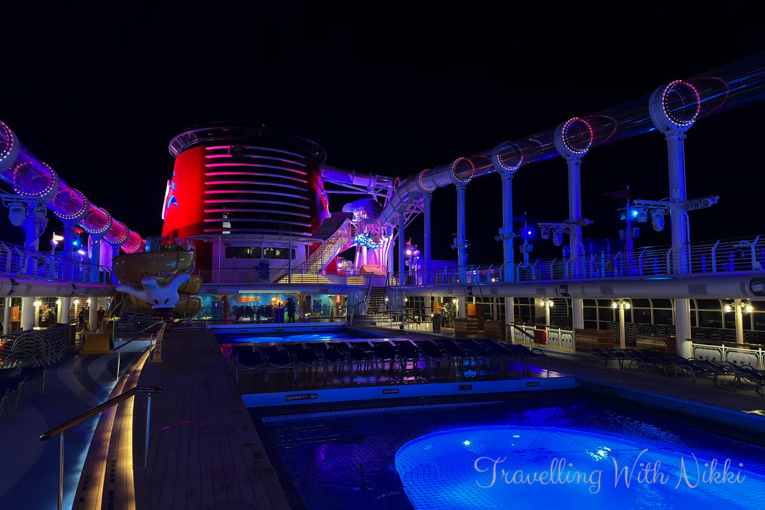 One top tip that I have discovered over the years is that if the Quiet Cove pool is busy, just head up there late in the afternoon as it is usually a lot quieter especially if Mega Jackpot Bingo is on which it was that day just after 4:00pm. It got even more quieter when nearly everyone else went back inside to start getting ready as it was formal night that evening and the Golden Mickeys was also showing in the Walt Disney Theatre.