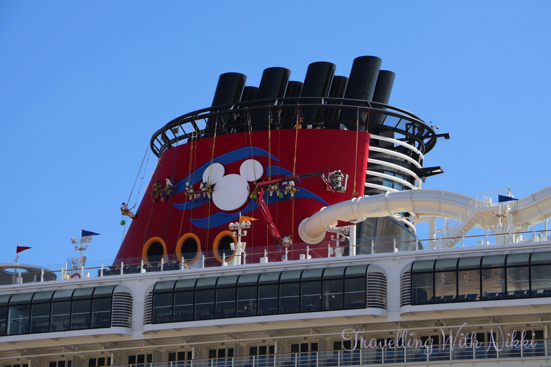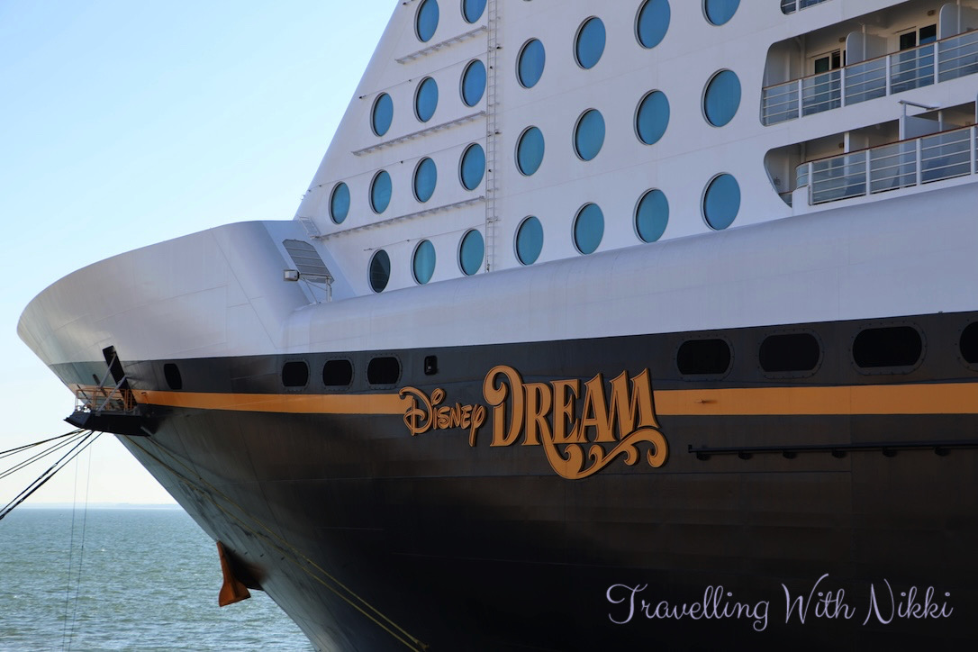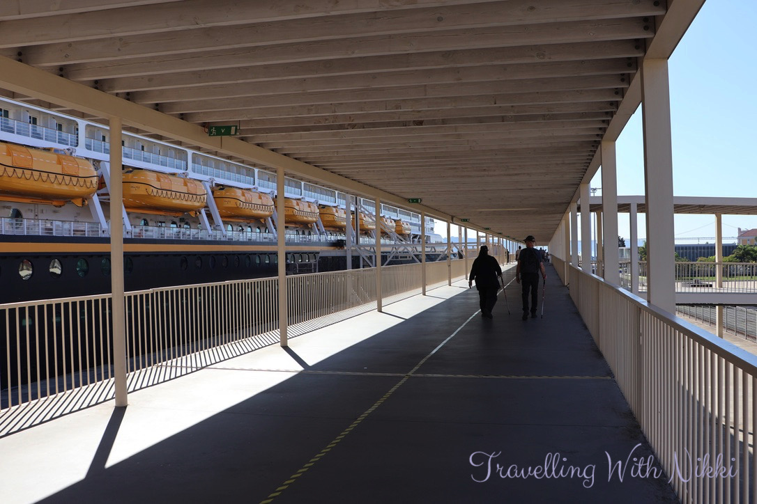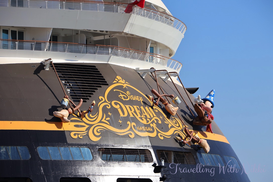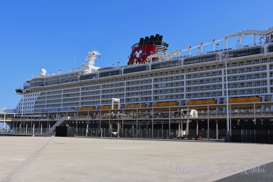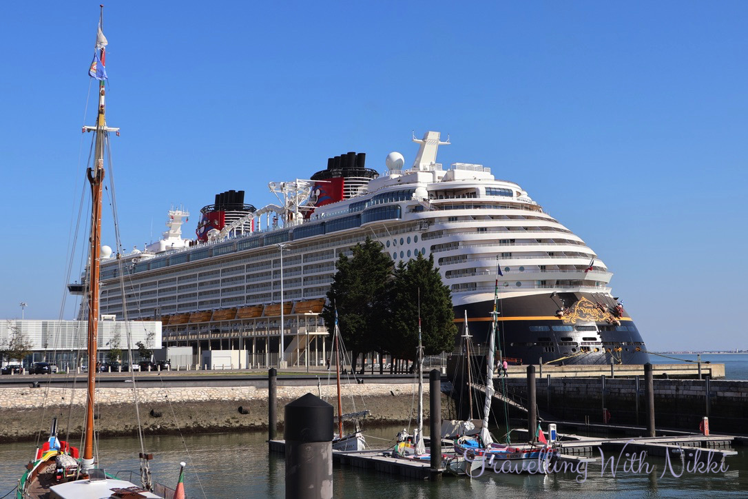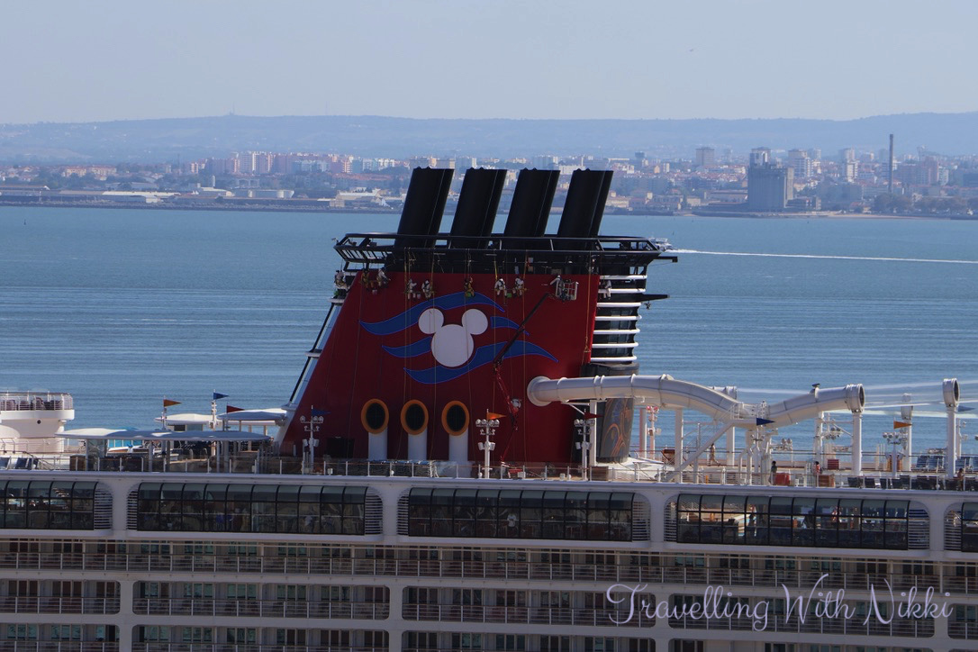 It was such a beautiful walk back along the waterfront to the entrance of the cruise terminal and there are so many opportunities to take photos of the ship in Lisbon – and I also made sure to get a close up picture of Sorcerer Mickey on the stern of the Disney Dream as with the exception of embarkation day in Southampton, this would be my only chance during this cruise.