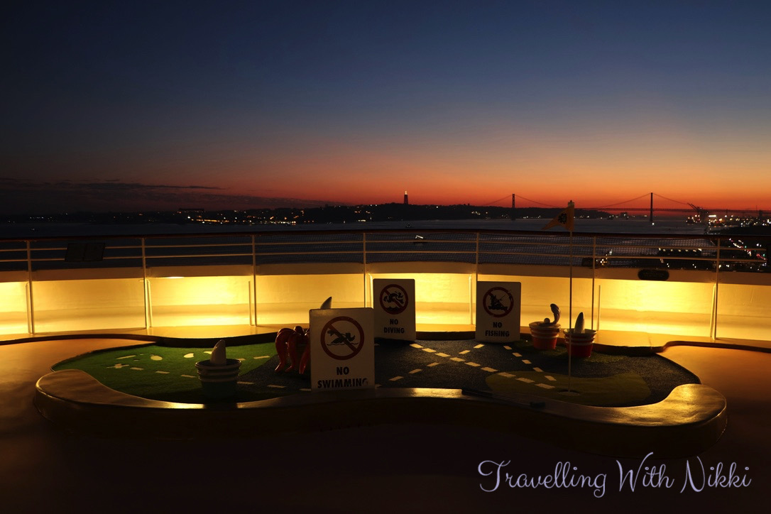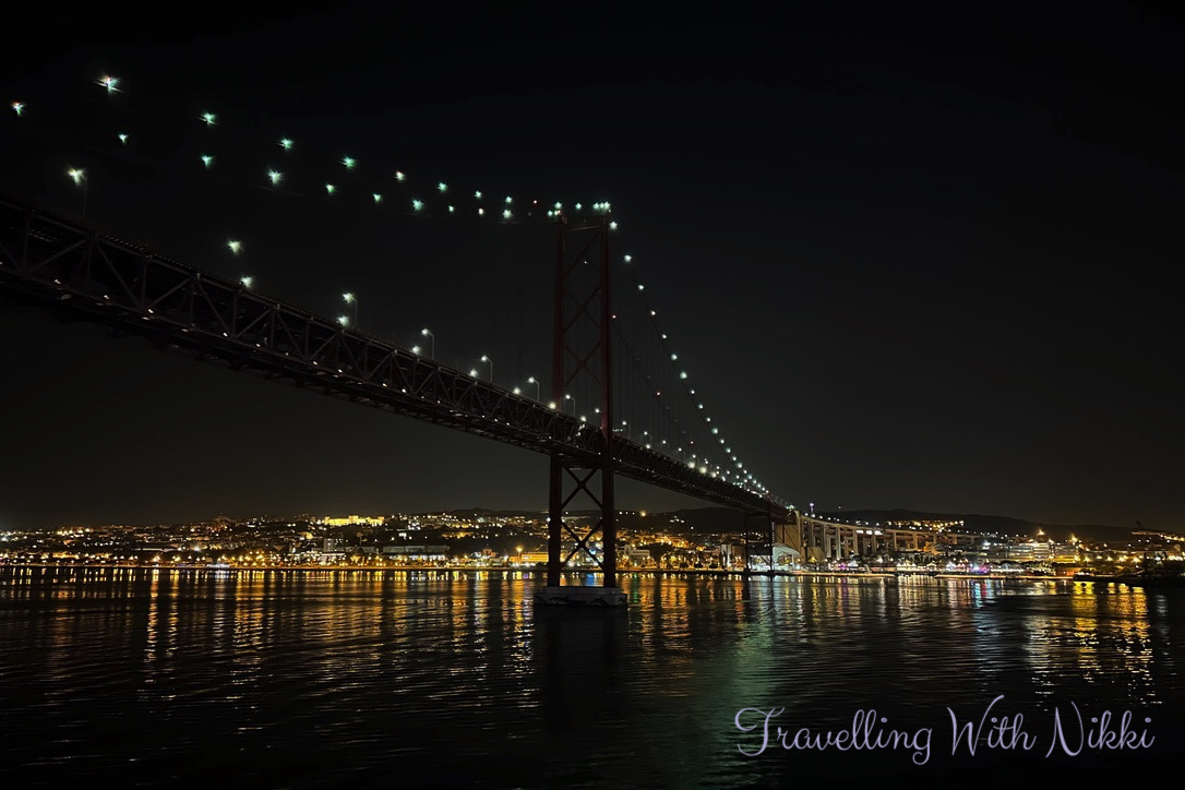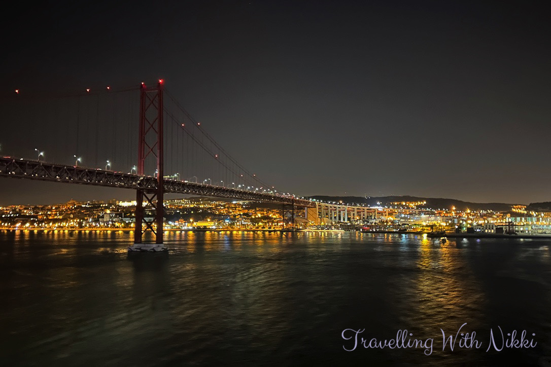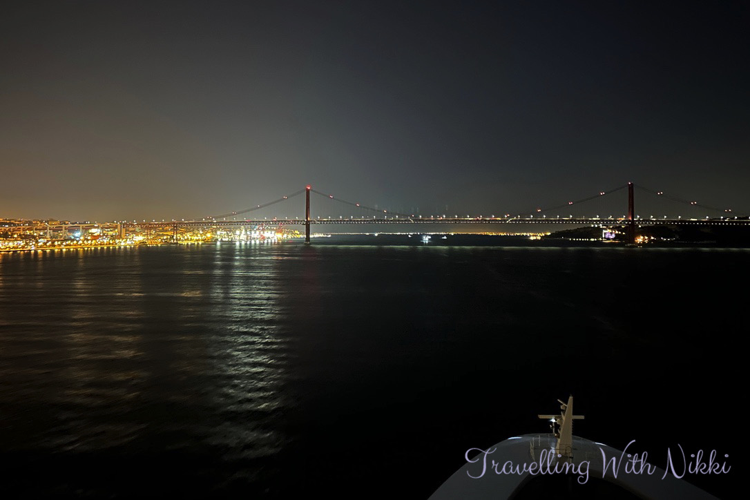 Our day in Lisbon ended very similar to how it started as we changed into our pyjamas and sat on our verandah with a cup of tea (as well as a little dessert) and watched as we sailed away from the city. We left the dock at 9:45pm and sailed back under the Ponte 25 de Abril bridge twenty minutes later at 10:05pm.
