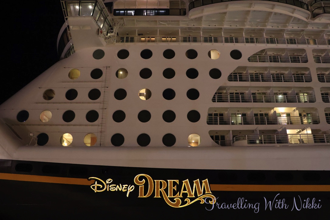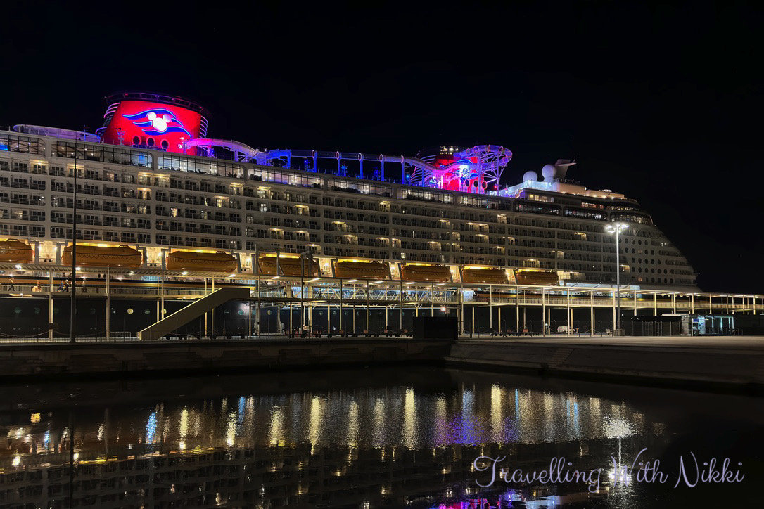 As suggested by Anthony our Cruise Director that morning on the Good Morning Disney Dream show, we disembarked the ship along with several others for a few minutes just before 8:00pm just so we could see the Disney Dream all lit up at night from the waterfront in Lisbon which is something that you do not often get the chance to see as you have usually left the port a few hours earlier in daylight – the only other time that we’ve seen this was on our Hawaiian cruise on the Disney Wonder when we overnighted in Nawiliwili on the island of Kauai.