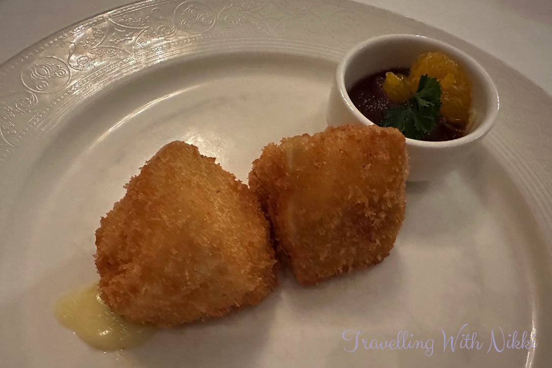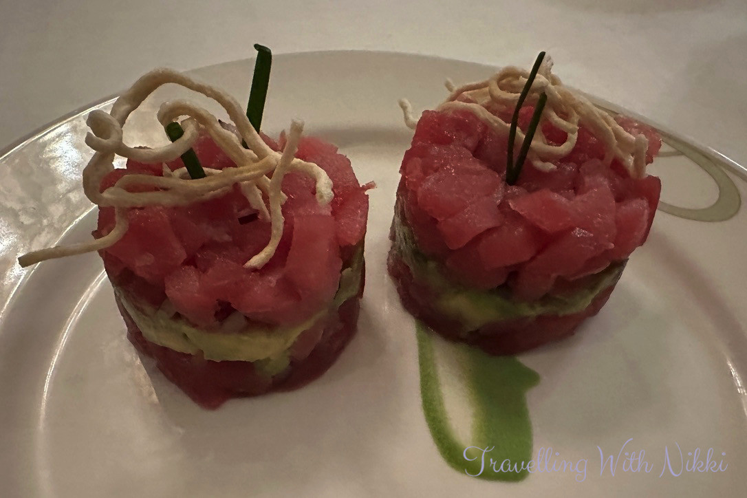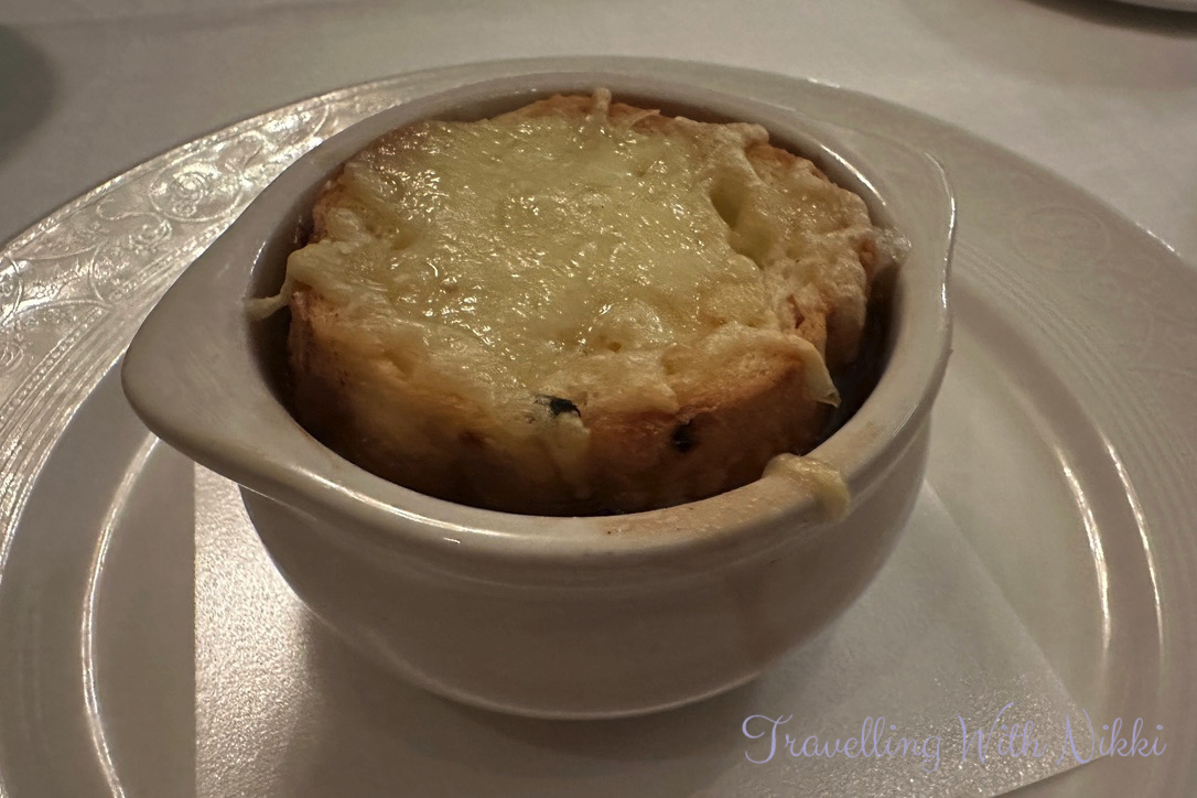 To start my meal I ordered the Breaded and Deep Fried Brie followed by the best French Onion Soup I’ve ever had onboard. As I had loved my Ahi Tuna and Avocado Towers so much the night before, Jaqueline had said she would get them again for me on this night so I had two for my main course – it only seemed right as I am not sure when I will have the chance to have another one as they are not on the menu on either of the next two cruises that we have booked. And yes, spoiler alert – we have another two cruises booked!
