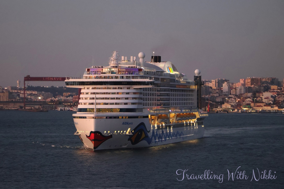 We were treated to a beautiful sunrise across the River Tagus just before 7:30am and shortly afterwards we also watched and waved from our verandah as the AIDAperla sailed past and docked further along the same pier.