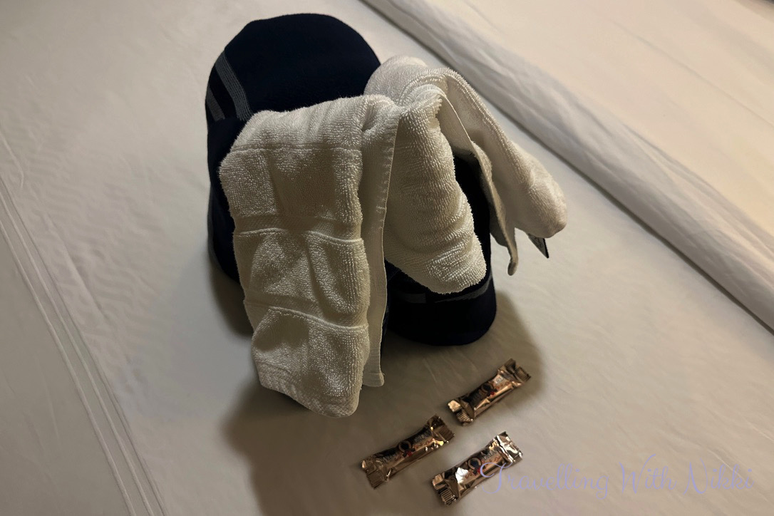 We walked back down to our stateroom where we could sit in bed and chill for a little while as even though our all ashore time was 8:00am and our all aboard time was 9:00pm making it a very long day in port, we had already been to Lisbon together in 2019 (and my boyfriend had spent some time working there over the years) so we were in no hurry to be off the ship as soon as possible and could just take it easy.