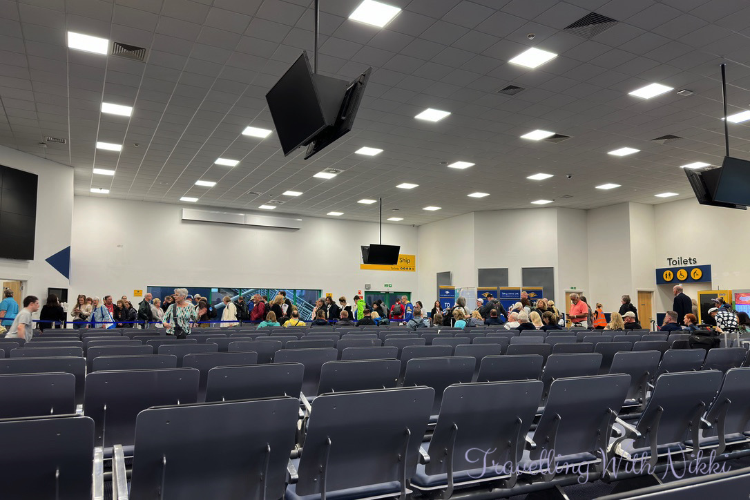 One positive from our experience at City Cruise Terminal is that security was extremely fast but that is the only good thing I can say. One important thing to note is that there is no separate Pearl or Platinum Castaway Club line in Southampton – everyone apart from Concierge guests uses the same line to check in and that line is long! As the waiting area to board was already full at this point, they stopped checking in any more people so this line did not move at all for another fifteen minutes – it was so bad for anyone who was not completely steady on their feet and sadly someone in the line actually collapsed whilst we were waiting.