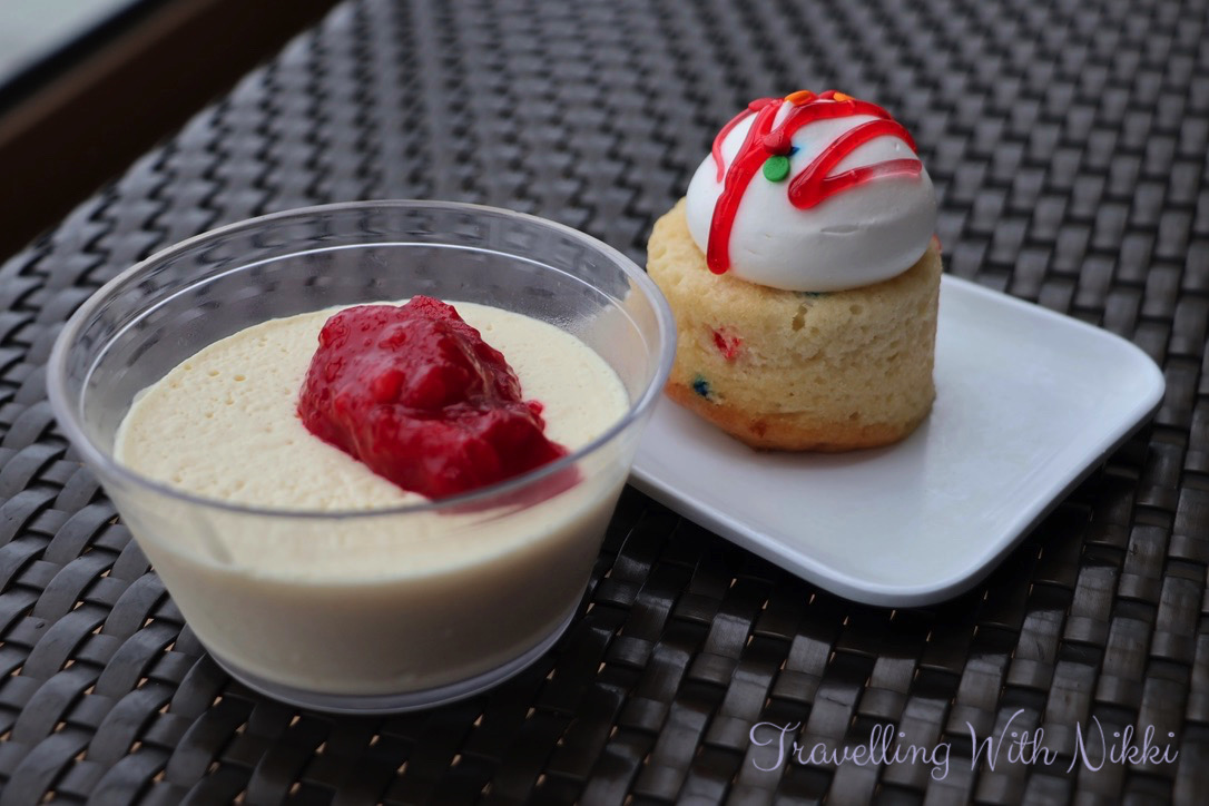 Our next stop as is tradition on embarkation day was to head up to Cabanas on Deck 11 to get some lunch as we were both very hungry at this point. However due to the heavy rain outside, it was very busy and crowded inside but we managed to find a table a few minutes later once another family had finished eating. As always I got a plate of Shrimp with a little side of Mac and Cheese and yes the food is different on the European cruises due to different suppliers which I know caused a lot of complaints but to us, it tasted normal and how food should taste without being overly processed. However one of the only exceptions I’ve been reliably informed is the Chicken Tenders which are nowhere near as good as the famous ones you normally associate with Disney Cruise Line. Once we had finished eating, we decided to get dessert and take it to the Quiet Cove to eat where it was much quieter which in turn freed up our table for someone else to sit down and eat lunch.