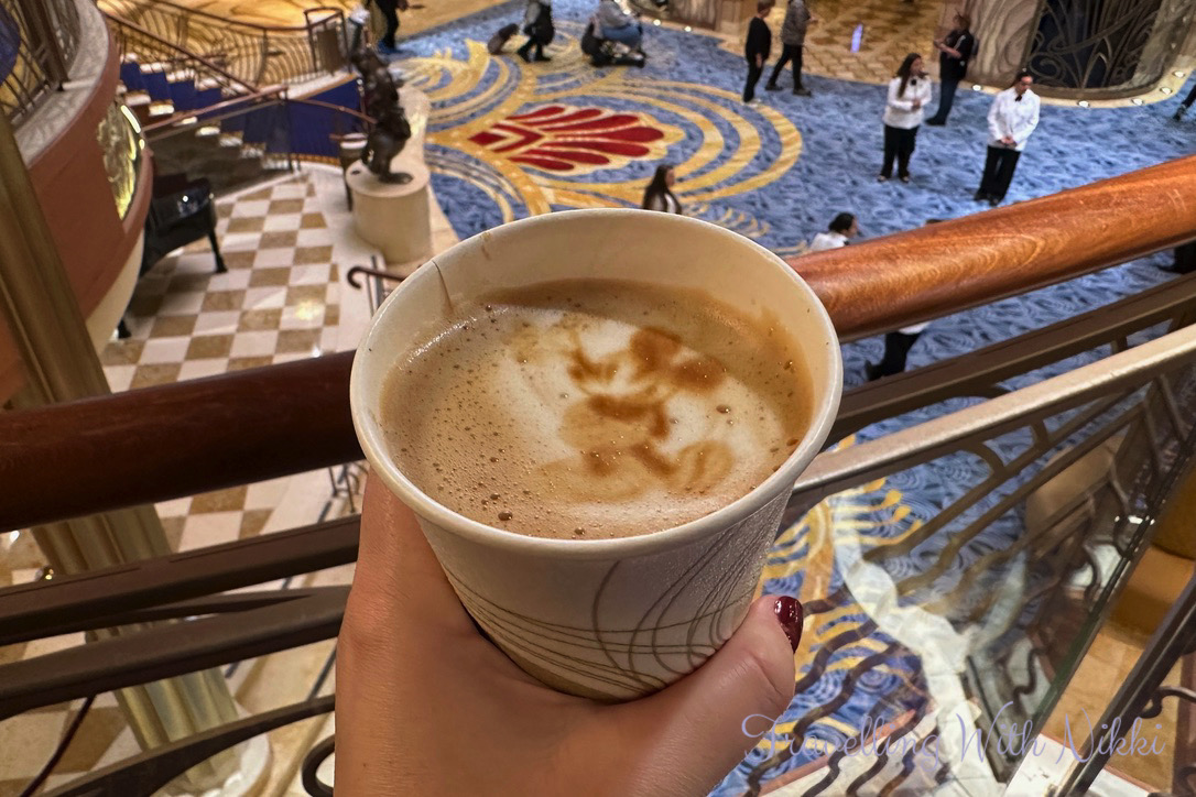 As we still had an hour before the muster drill at 4:00pm and as it had been a very early start, we were both in desperate need of caffeine so coffee was absolutely needed. Cove Cafe was very crowded so we walked down to the Vista Cafe on Deck 4 where I ordered an Oat Latte and discovered that the plant-based milks available onboard for this cruise were from a Spanish brand that I had never heard of and had a very different taste to normal so I probably drunk a lot less coffee during our cruise than usual. As I drink a lot of tea (I seriously could not survive without it) and had already thought in advance that this could be a possibility, I had brought a carton of my favourite Alpro soya milk onboard with me to keep in our stateroom fridge so I simply bought another one when we reached Vigo two days later and they both lasted me the entire cruise.
