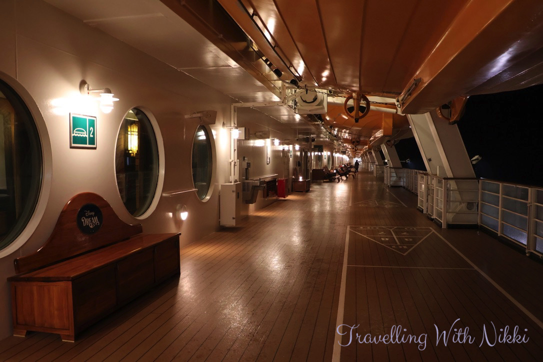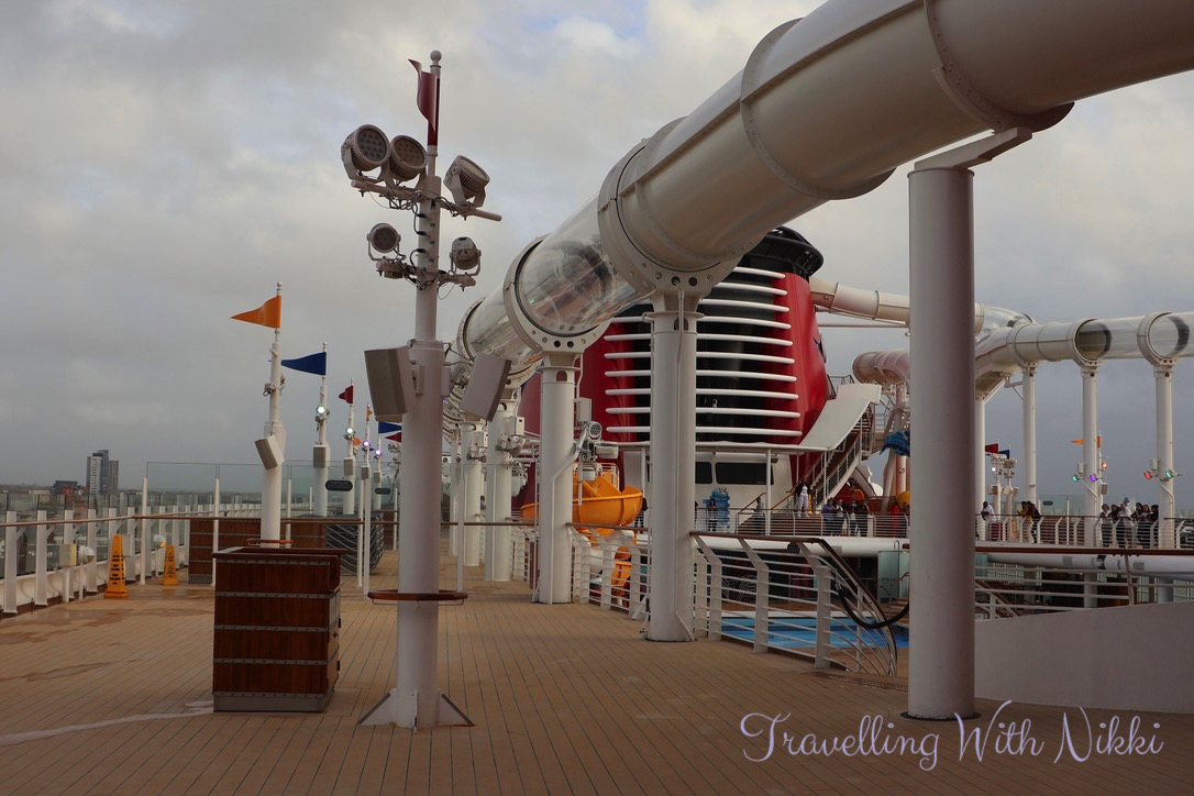 One thing for sure though was that it was nowhere near as busy and crowded as it had been on our other cruise on the Disney Dream this year which was nearly at capacity – it looked empty in comparison! One thing that we did find during all of the deck parties onboard was that all of the spaces along the railings on Deck 12 were always taken first whilst Deck 11 never seemed to get crowded at all until the last minute.