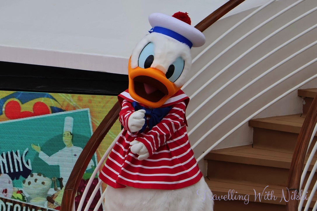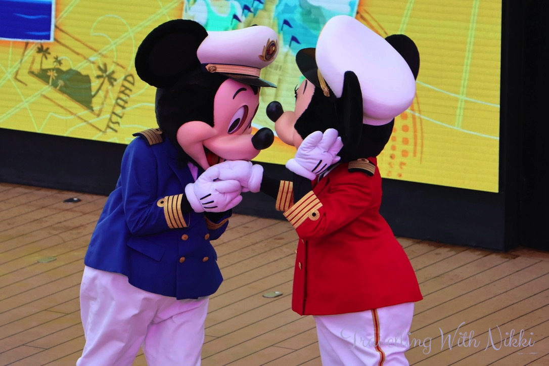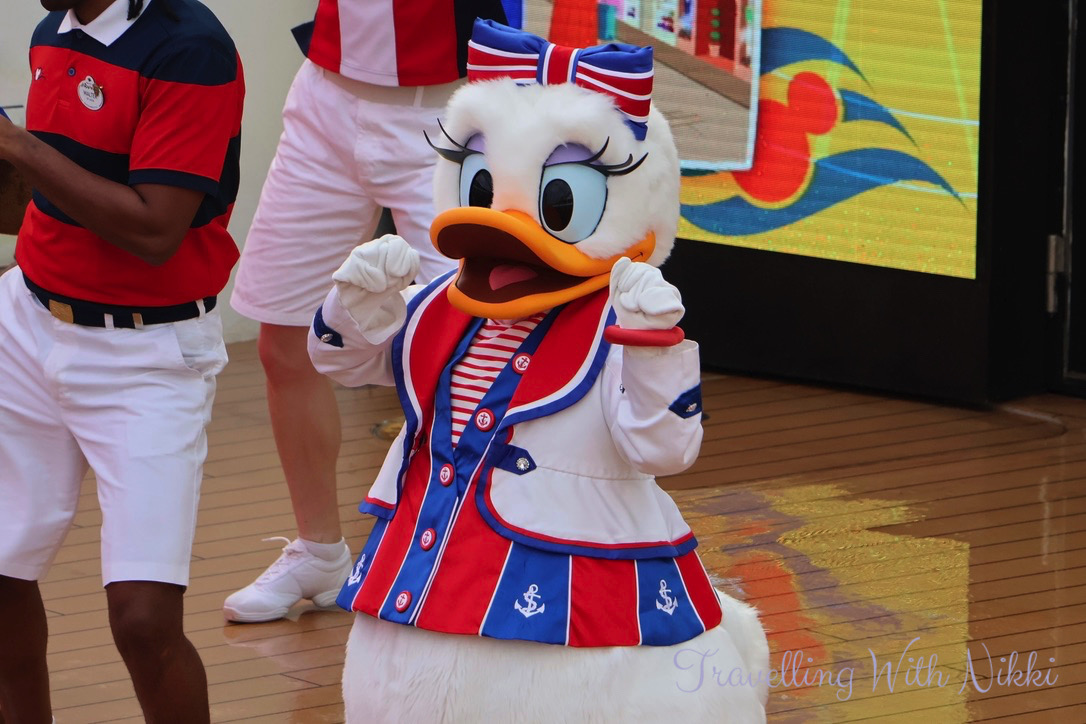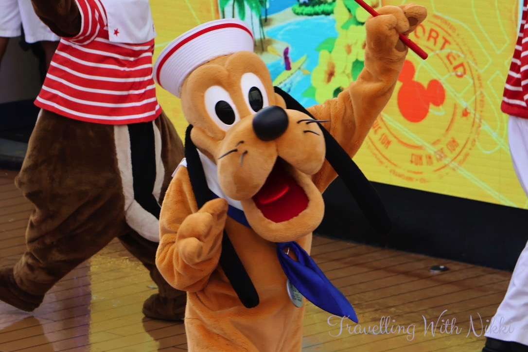 During the Sailing Away deck party Captain Minnie, Captain Mickey, Chip and Dale, Donald, Daisy, Goofy and Pluto dance to Clap Your Hands, Minnie Oh! Minnie, Staying Alive, Shake Your Tail Feather and Sailing Away and when the “A Dream is a Wish Your Heart Makes” horn sounds, it really is one the best feelings in the world.