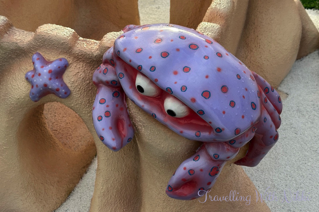 Once the sailaway party was over, the cruise staff continued the celebrations with more music and dancing however we left the crowds behind and walked up to the back of Deck 13 to take some more photos now that it looked so much brighter out. I was also so happy to see that my beloved purple crab which can be found at Goofy Golf had finally been repaired as the last time I saw him, he was looking slightly worse for wear as it looked like someone had taken one of the golf clubs to him in anger.