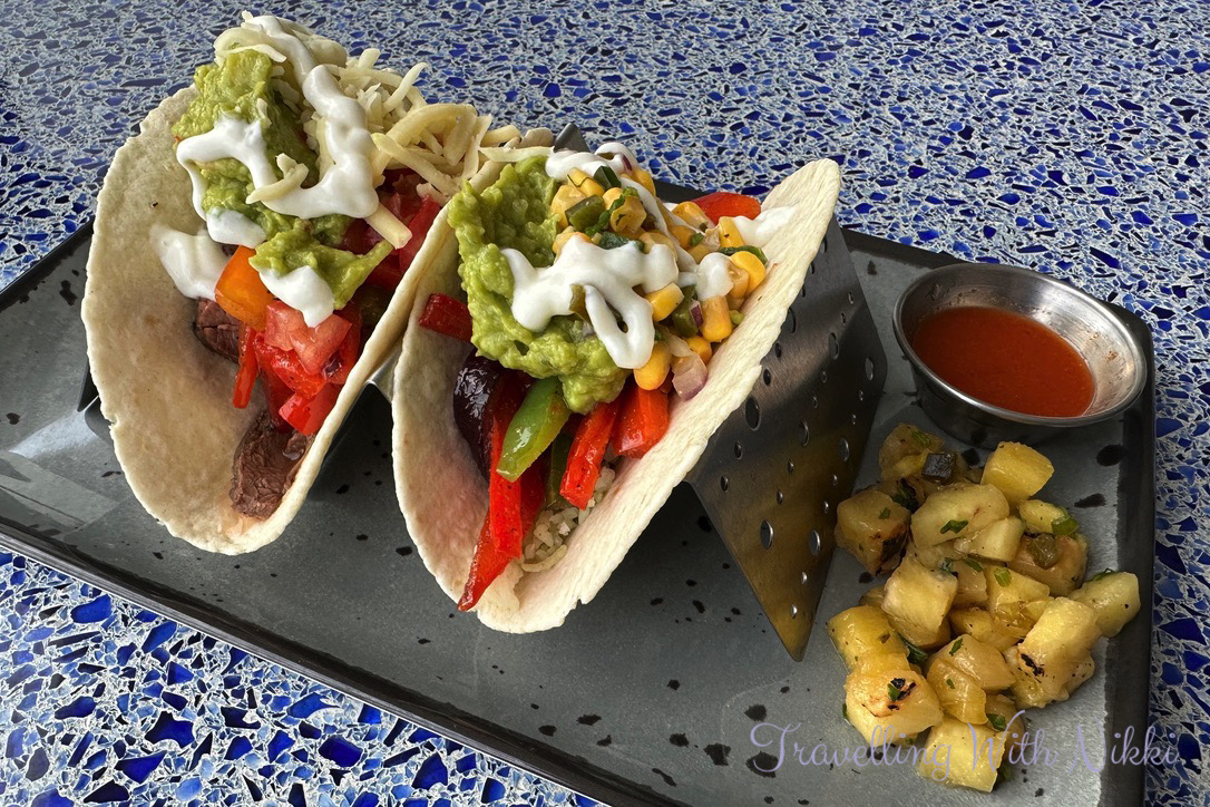 As we did not have dinner for over another three hours, we also decided it was finally time to go to one of the best dry dock changes ever made which was the addition of Ramone’s Cantina to the Flo’s V8 Cafe line-up which serves tacos and bowls and is very similar to Donald’s Cantina onboard the Disney Wish. However do not be alarmed as it has not replaced anything as it is simply in addition to Luigi’s Pizza, Tow Mater’s Grill and Fillmore’s Favourites. The tacos were simply delicious yet so messy (you really need a second tortilla to catch everything that falls out of the first one and then you can have a bonus taco!) and I loved that my favourite chilli garlic hot sauce was also available onboard.