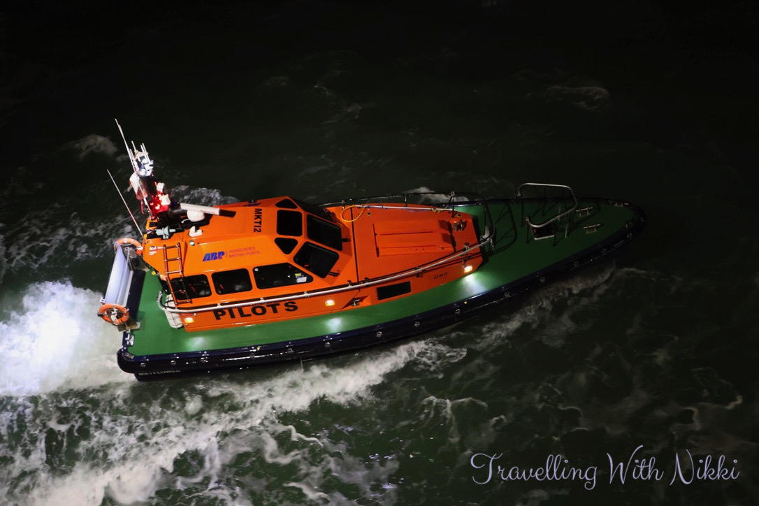 After getting our shopping we walked around Deck 4 which is one of our favourite things to do in the evenings when on a cruise. However it was extremely windy out and there was a lot of spray in the air so we did not walk as many laps as we had planned but we did watch as the harbour pilot jumped from the Disney Dream into the pilot boat which then turned around to head back to Southampton.