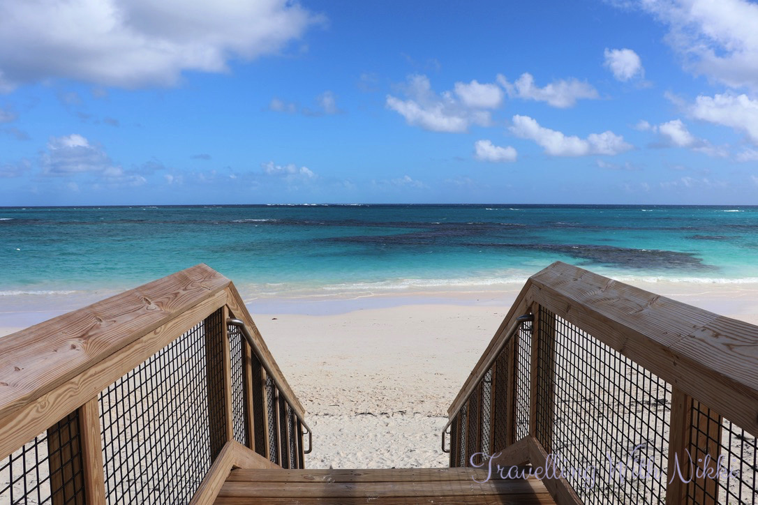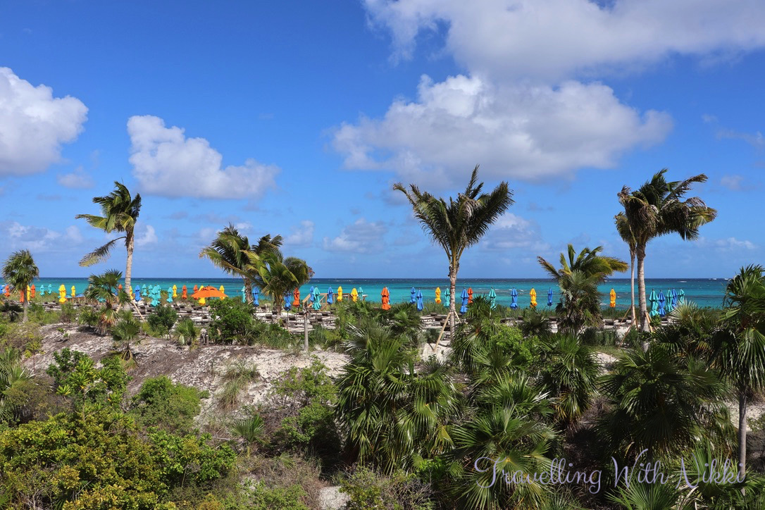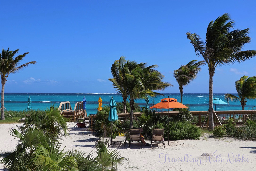 There are so many sun loungers at Lookout Cay that you will not have an issue getting one but not all of them are right on the water (so not necessarily where some people want them to be) as the majority of them are located just behind the sand dune so all you have to do to get to the sea is to cross one of the many small wooden bridges and there are also some that have ramps as well as steps. It really was such a picture perfect beach.