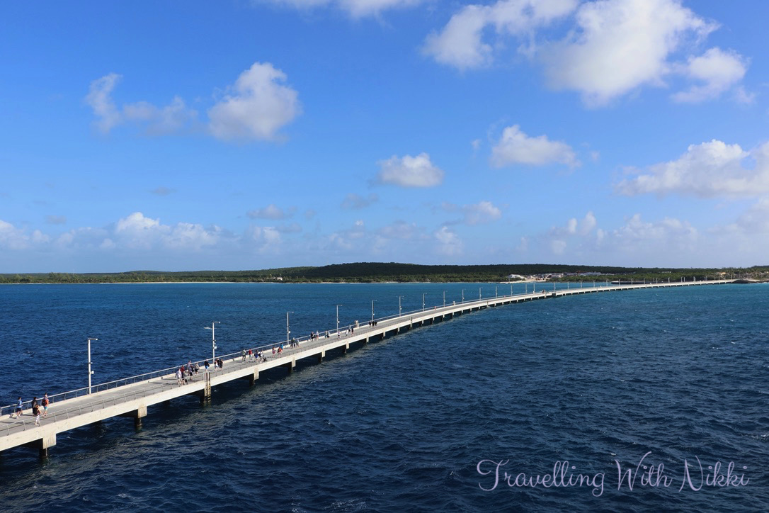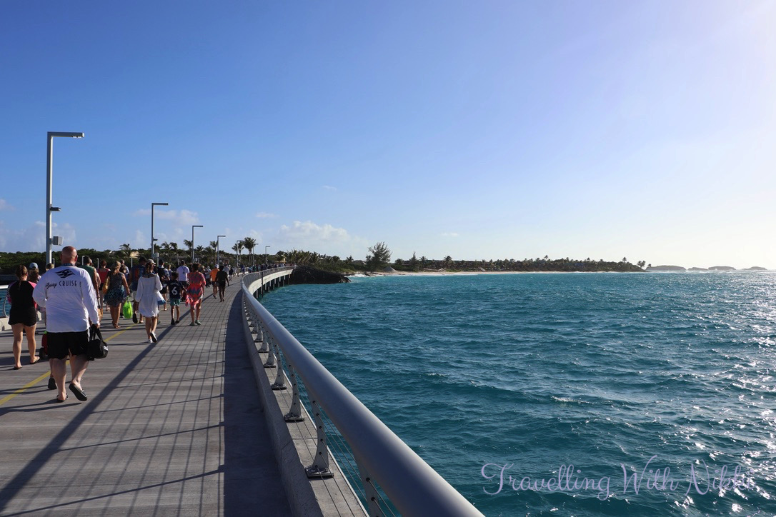 The walk along the pier took us just over nine minutes (I timed it) at a normal walking pace. It did not even feel like it was a long walk as I was so excited to be there with so much to look forward to that day and I was constantly taking pictures, looking at the crystal clear blue water around us as well as dancing along to Ery’ting Cool – the song written especially for Lookout Cay by the Bahamian musician Victor Johnson – as well as turning around occasionally to get a view of our beautiful ship docked in the sunshine.