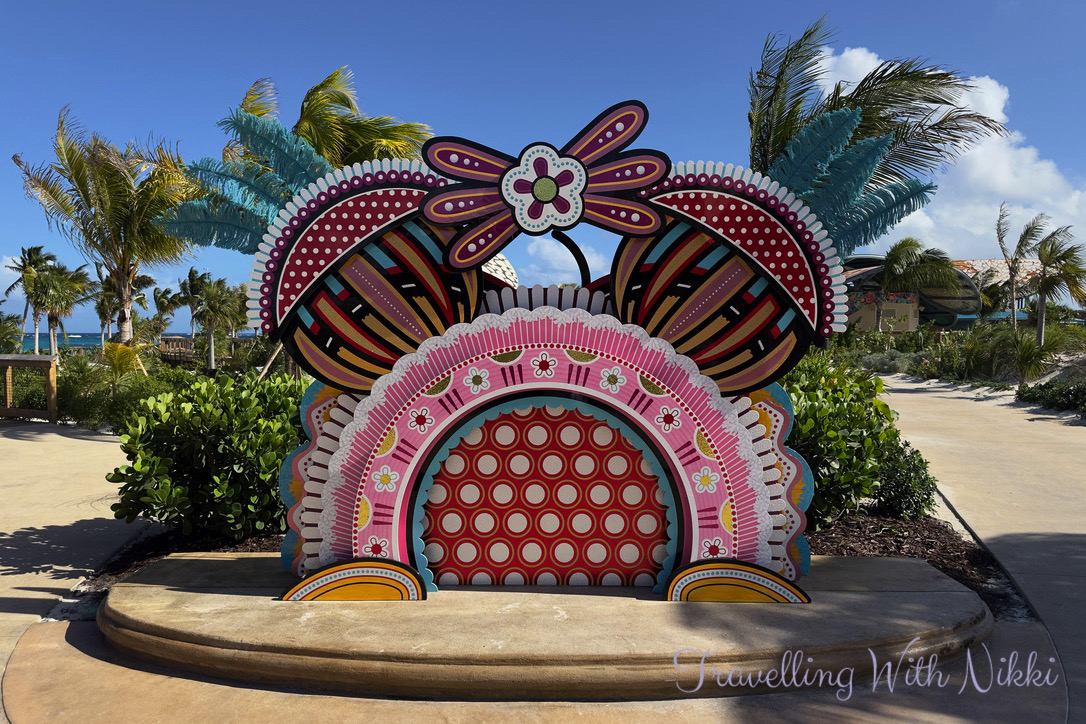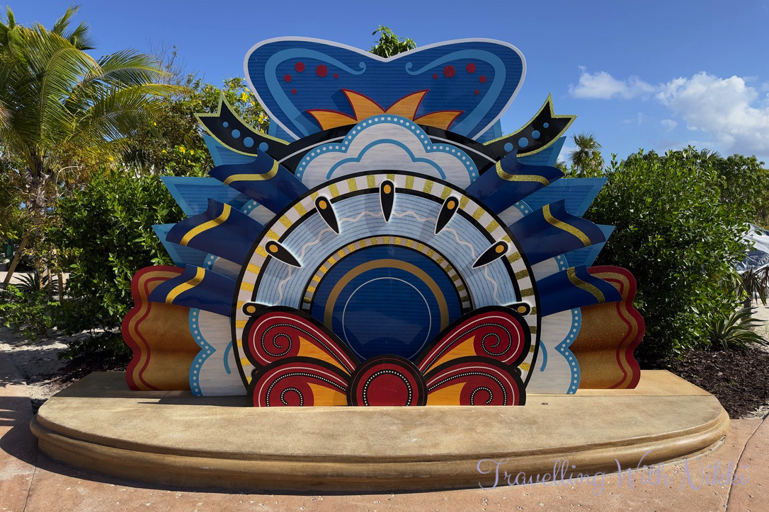 Towels are available once you step off the tram at the Goombay Cultural Center so you do not need to carry them off the ship which makes life a lot easier and our first stop was the Gathering Tree which is a meeting point at Lookout Cay for many of the excursions and it was fun to see how many characters we could see represented in the tree.