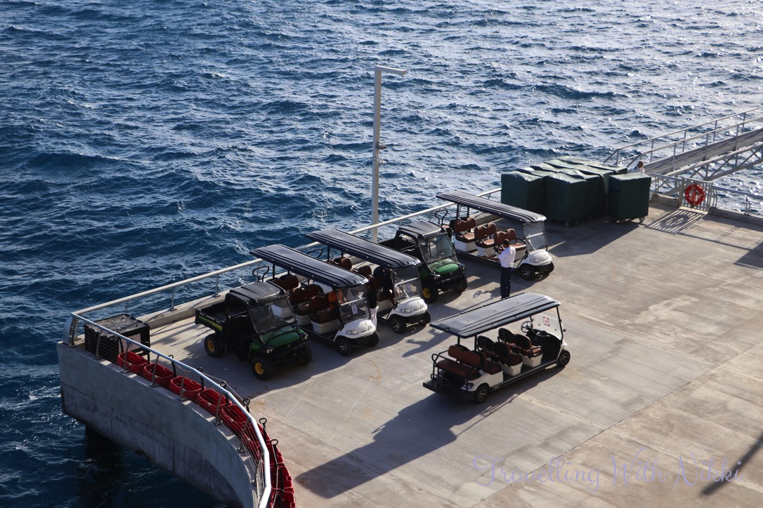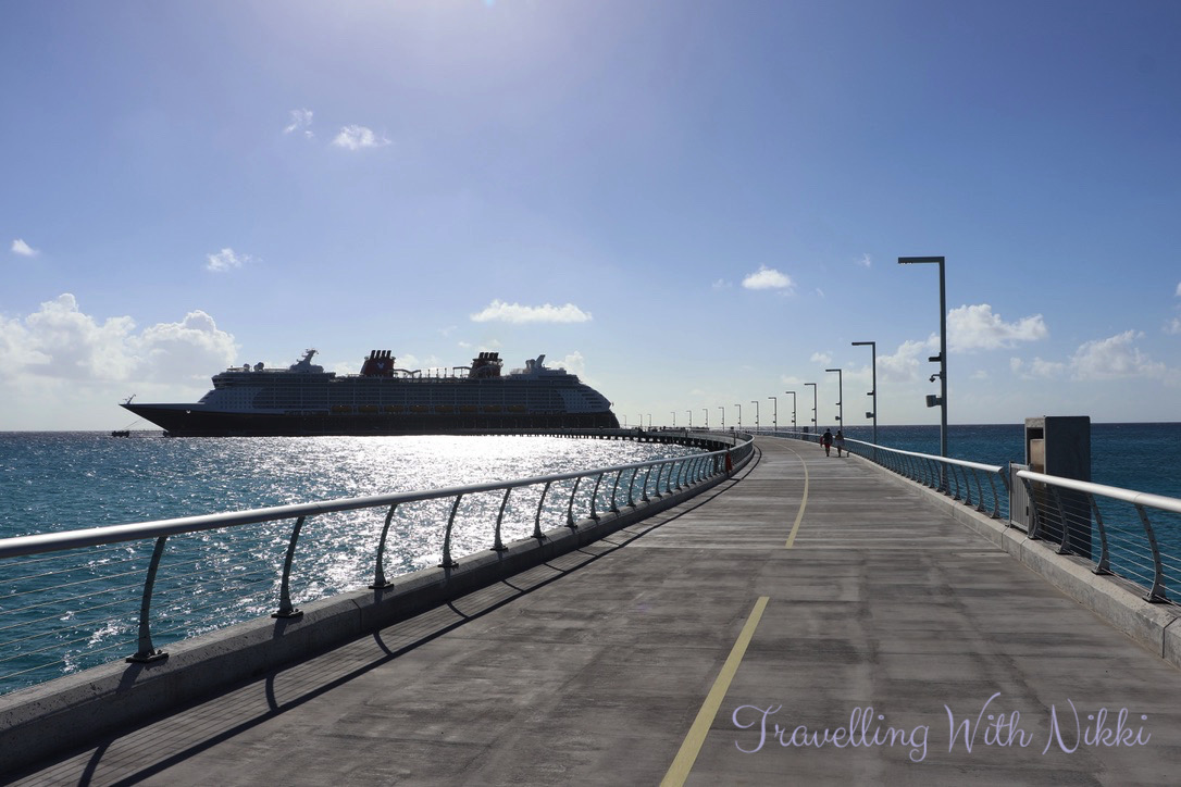 The reason for the half mile long open trestle pier from the shoreline out to the deep water where the ship docks is to act as a bridge to protect the fragile coral reef underneath so that no dredging of the sea bed was needed to ensure as little impact as possible was made to the natural environment. I really wish there were signs along the pier itself to explain this to stop people moaning and complaining about it – although it was mentioned during the Good Morning Disney Dream show that day.
