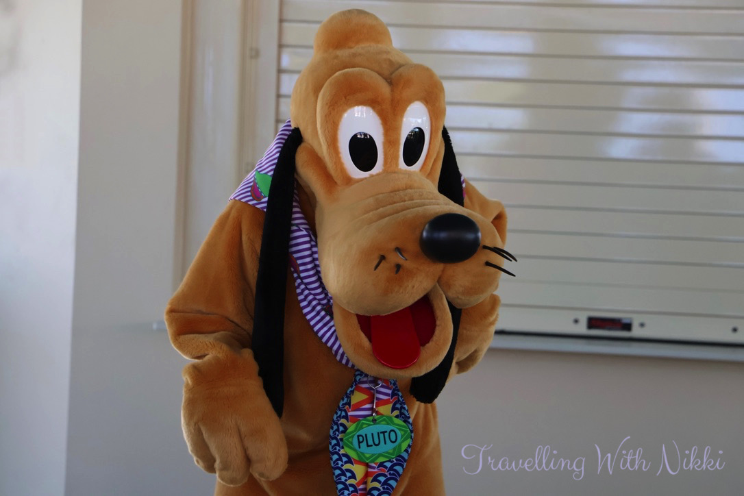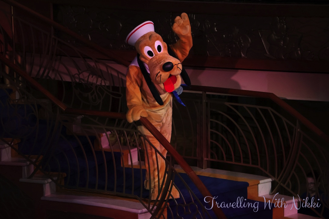 It was finally time to meet our last characters of the day so we made our way back to True-True BBQ ready to meet Goofy as well as Chip and Dale (as well as Dale’s amazing straw backpack) who were out at 2:00pm and finally Pluto at 2:30pm. The lines were much quieter than they had been earlier in the day (which surprised me as this was the only time that these characters were out whereas Minnie and Mickey as well as Donald and Daisy were out twice) but I think a lot of people had already gone back to the ship at this time.