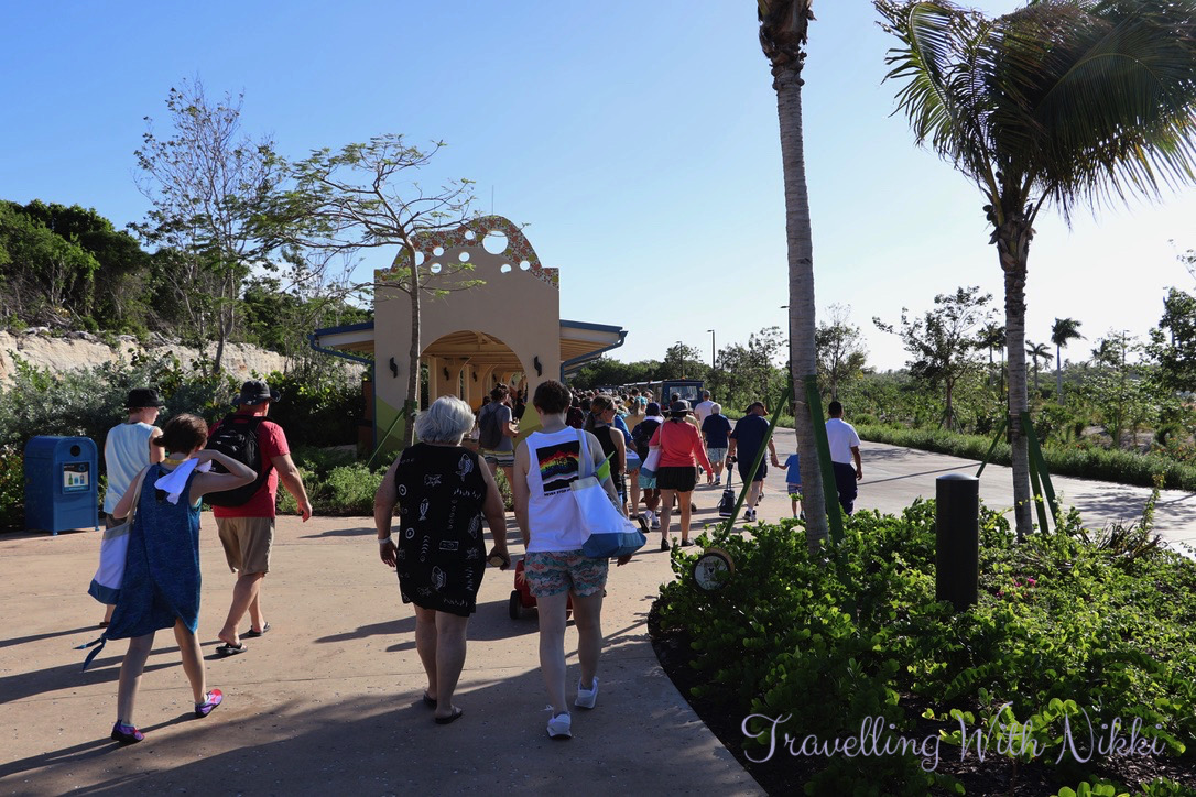 Currently the only way to get from Mabrika Cove to the Goombay Cultural Center where the majority of the attractions on Lookout Cay are found is to take the tram however this could change in the future.