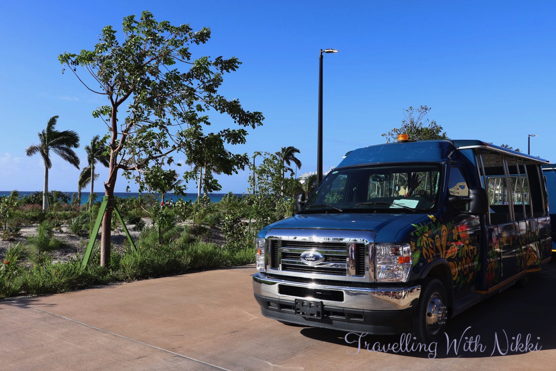 From leaving the ship to arriving at the Goombay Cultural Center Tram Stop took us thirty five minutes which included the walk along the pier, the tram ride as well as stopping for coffee and to buy souvenirs.