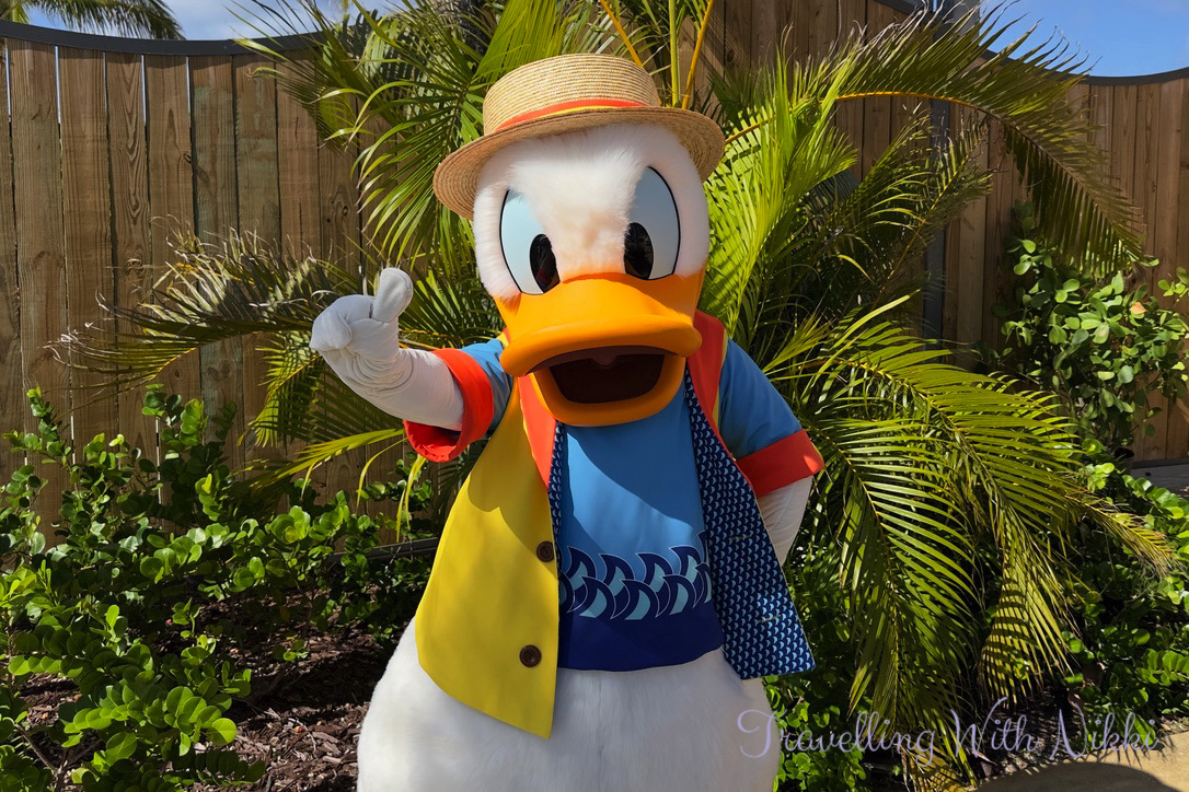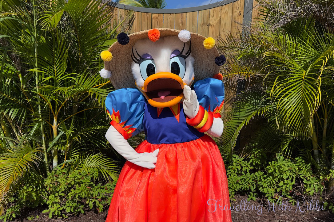 After meeting the one and only Minnie with her beautiful pineapple straw bag (Eleuthera is famous for its pineapples) and Mickey with his amazing conch shell shorts, I was fourth in line to meet Donald before doing the same again and running over to wait for Daisy with her incredible giant straw hat with raffia pompoms who were both out at 11:15am.