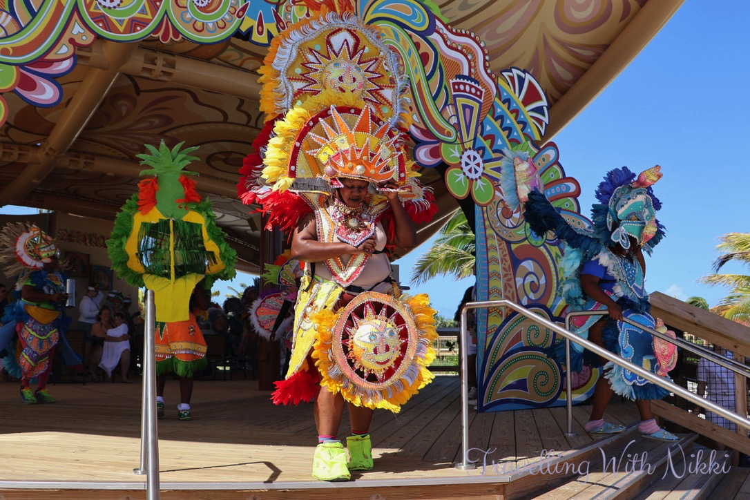 Junkanoo is the biggest celebration in the Bahamas featuring a parade with elaborate brightly coloured costumes (all made from cardboard, crepe paper and plenty of glue), music and dancing. After being told all about different Junkanoo traditions, Minnie and Mickey arrived along with a local Junkanoo group called Charisma. It was great fun with loud drums, trumpets, trombones, whistles and cowbells along with lots of dancing and you couldn’t help but join in and shout out “Ooh Ooh Junkanoo!” along with everyone else as the music was so catchy.