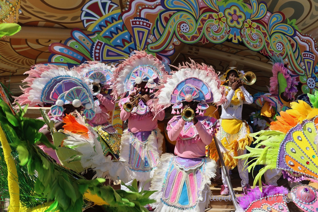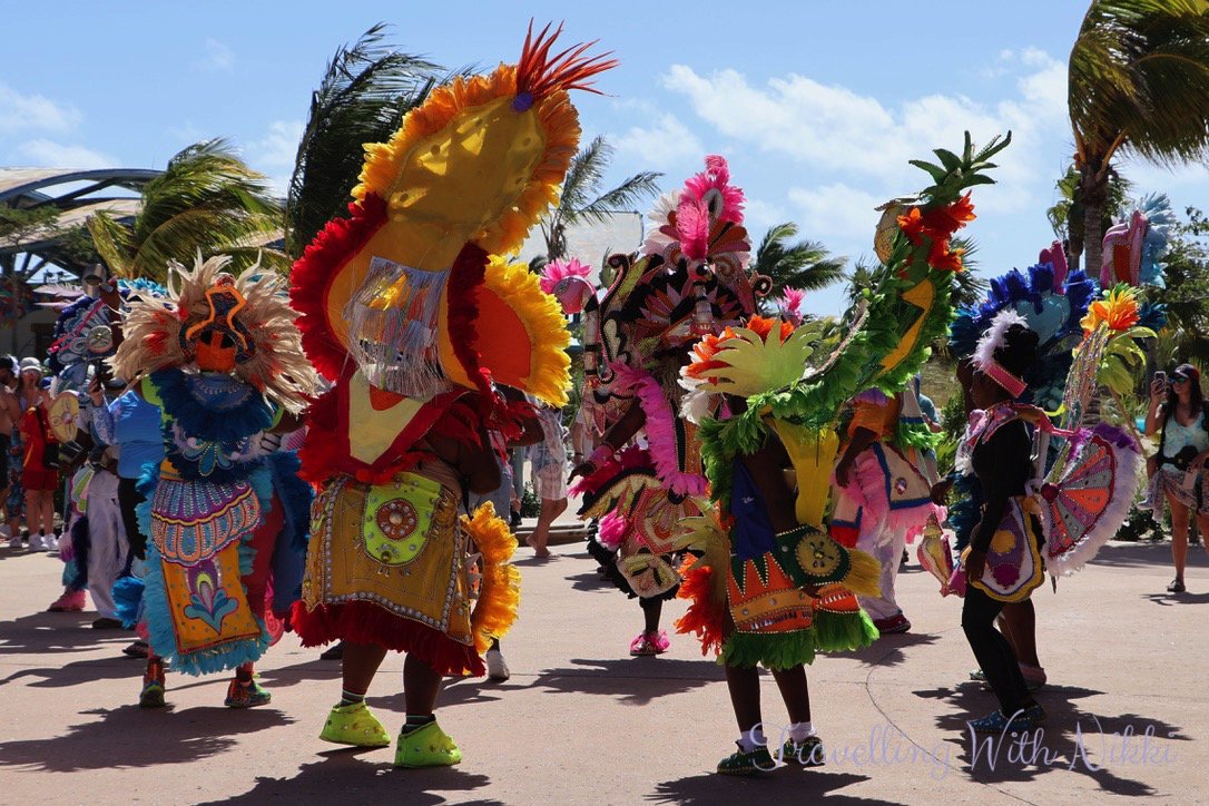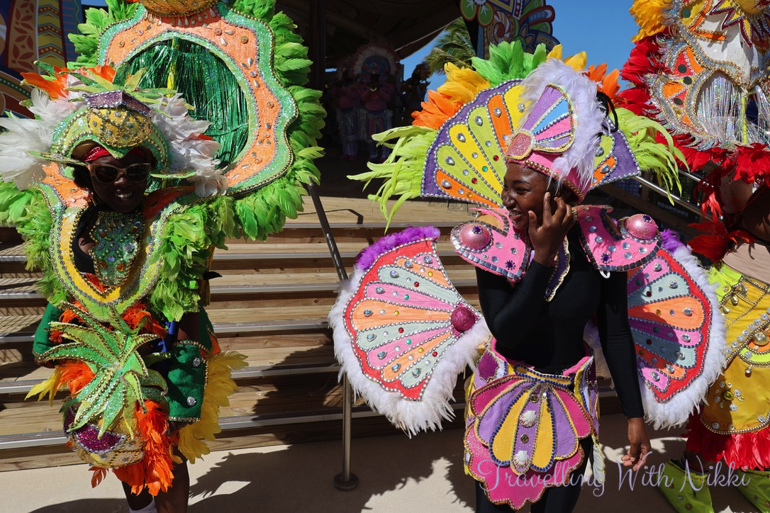 Rush! A Junkanoo Celebration was due to start at 12:00pm (there was another one scheduled at 2:00pm but this was when we were planning to meet Chip, Dale, Goofy and Pluto) so we walked along the beach back towards the Goombay Cultural Center where we got a front row spot ready for the party to start.