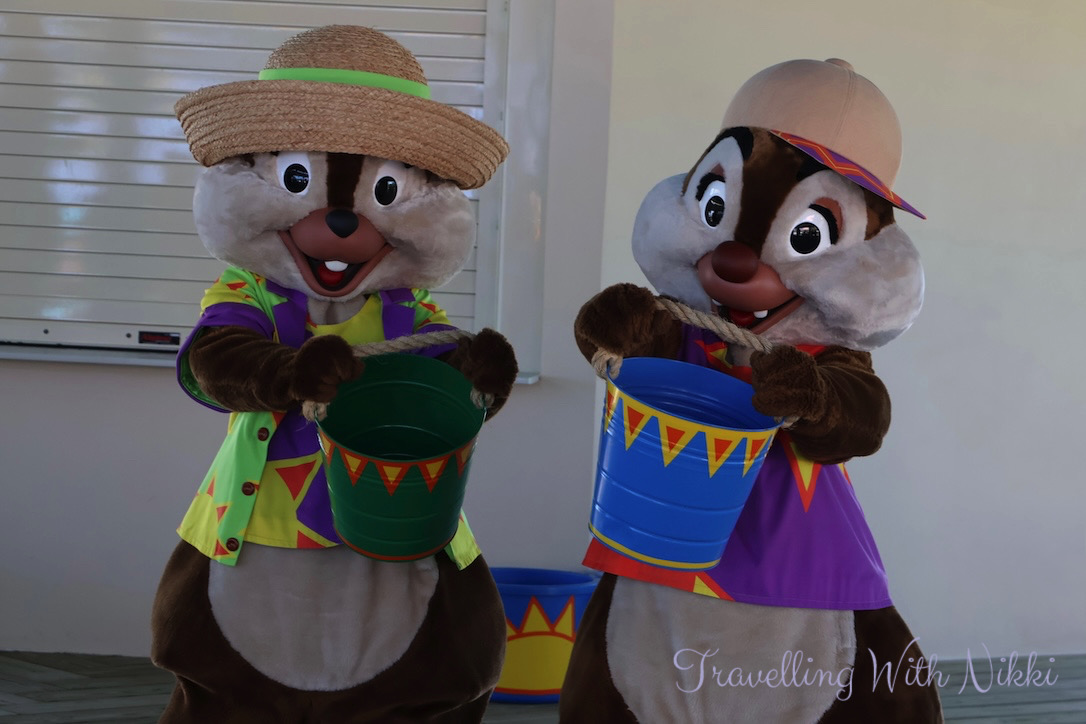 After we finished our lunch we walked over to the Play-Play Pavilion for the Fun in the Sun Beach Bash which ironically (although thankfully) takes place in the shade and features Chip and Dale, Goofy and Pluto dancing along to Bahamian versions of Disney songs before playing beach games inspired by their trip to the Bahamas including Goofy’s Good Day Limbo, Pluto’s Pineapple Ring Toss and Chip and Dale’s Water Brigade.