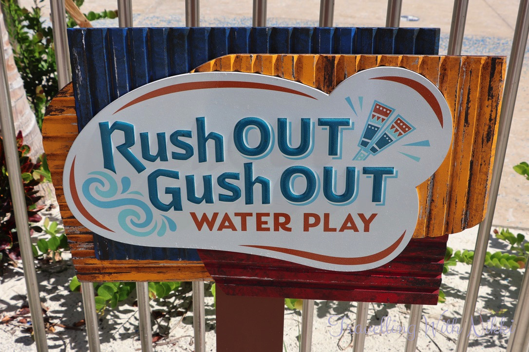 Rush Out Gush Out is a colourful water play area located alongside the Family Beach which is available for guests of all ages to enjoy and to cool off from the hot sun. There are water drums, lots of water features as well as two waterslides.