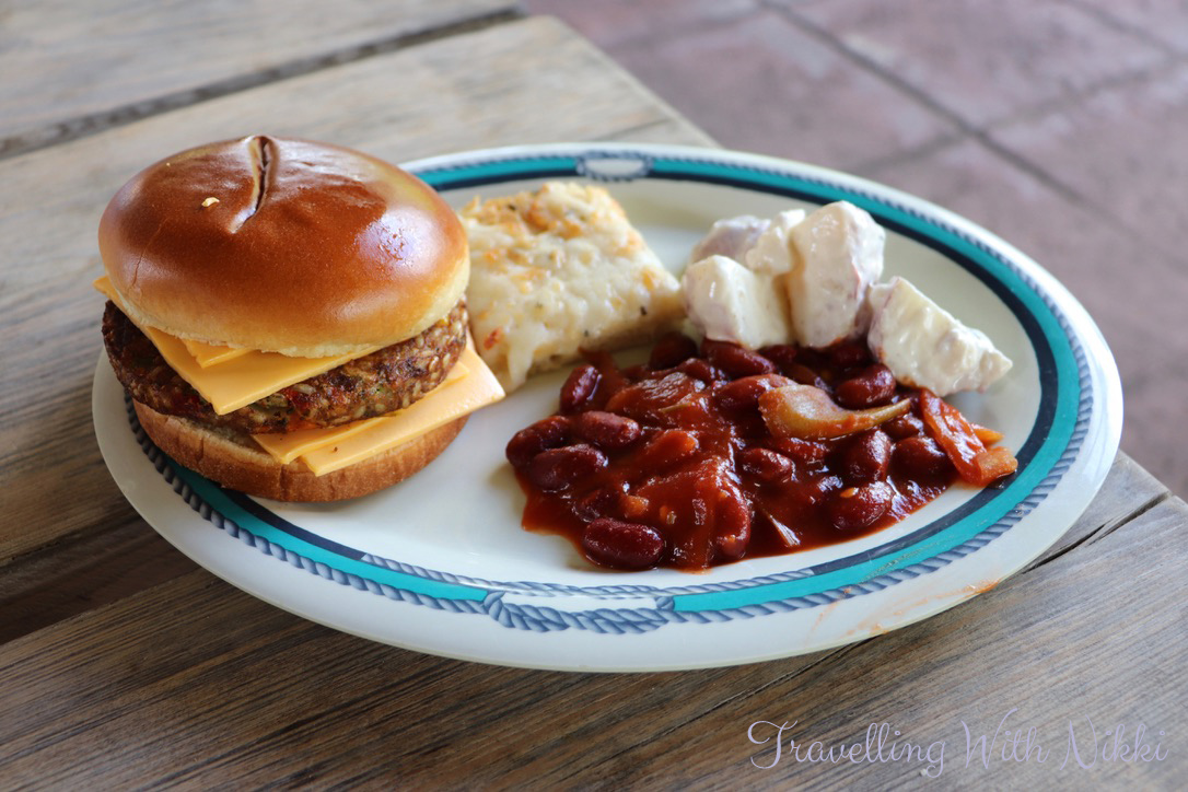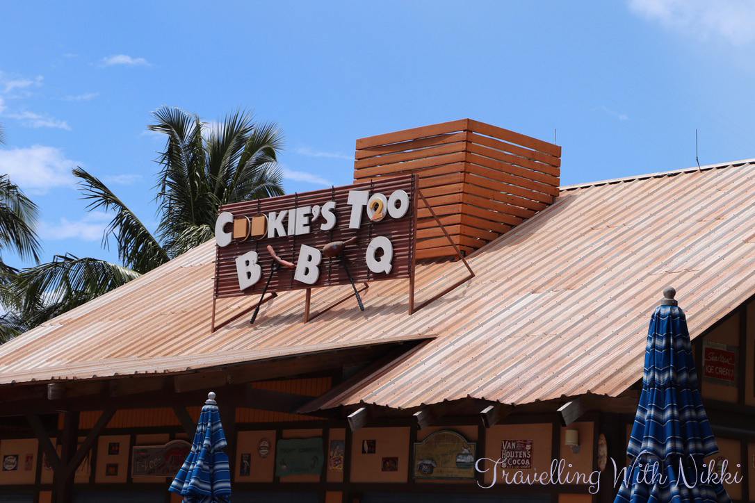 As we were both hungry, we decided to have lunch at Cookies Too BBQ. There was not too many people here at this time and all stations were open so it did not take long to get our food. Once again unless you eat meat, there are not too many options for lunch except for coleslaw, corn on the cob, potato salad, bean chilli as well as various fruits. I knew that they had veggie burgers so asked for one hoping that it was either a Beyond Burger or Impossible Burger that are served in so many places now including at Walt Disney World which I absolutely love – the Beyond Burger I’d had the week before at the ABC Commissary at Hollywood Studios was incredible. However the veggie burger at Castaway Cay is not good at all – in fact it’s possibly the worst veggie burger I’ve ever had in my life as well as the worst food item I’ve eaten in five cruises. I managed two bites of it and could not eat anymore and I hate wasting food. It was such a disappointment given how amazing the rest of the food onboard the ship is.