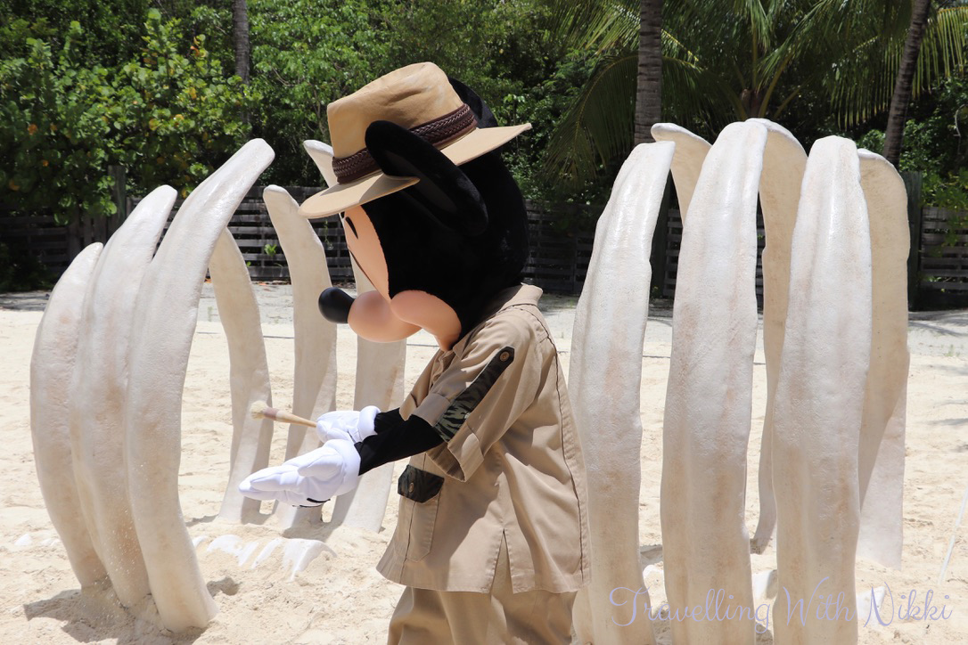 Our next stop was Monstro Point to meet Paleontologist Mickey Mouse at the Family Whale Dig. I’d seen photos of Mickey wearing this costume but always assumed that we could not meet him as Monstro Point is normally a kids-only area. However for forty-five minutes each day at 1:00pm, this area becomes open-house and all ages can visit. There was less than ten people here and we met Mickey with no wait. Not too many people seem to know about this character meet and it really is such a cool photo opportunity that you would not get anywhere else so I’m really happy that we noticed it on the “Fun for all Ages” section of the Personal Navigator.