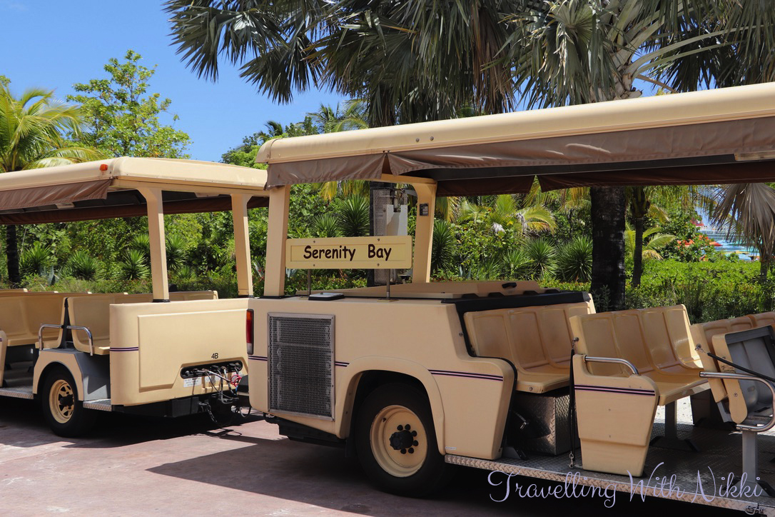 After walking back to Pelican Point, we took the tram over to Serenity Bay. It had started to feel very hot so we got another cold drink as well as another ice cream and sat in the shade under an umbrella on the beach. Serenity Bay is absolutely beautiful and it was a perfect place to sit and relax in peace and quiet. However not long after we got there however, the sky started to look very grey and ominous but thankfully it did not rain again.