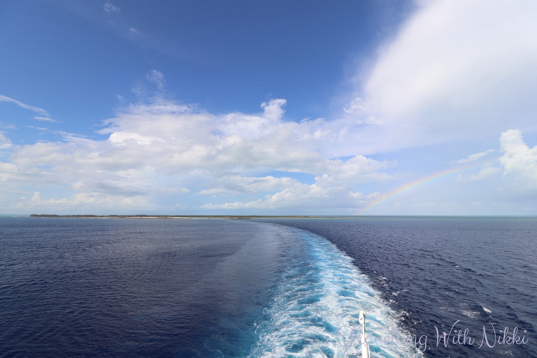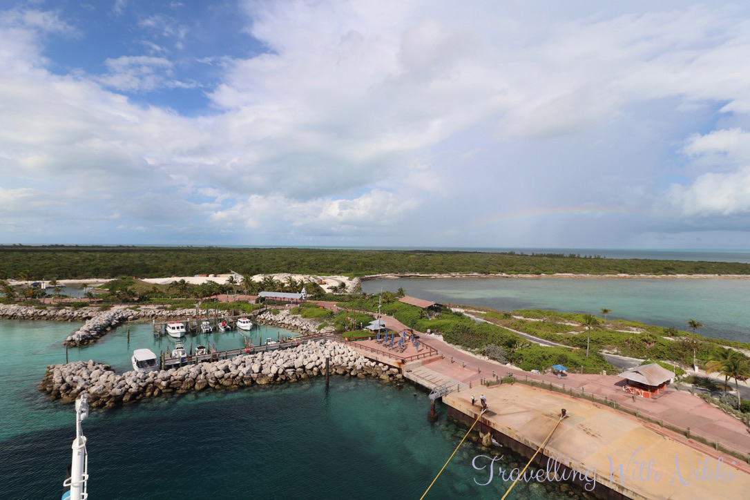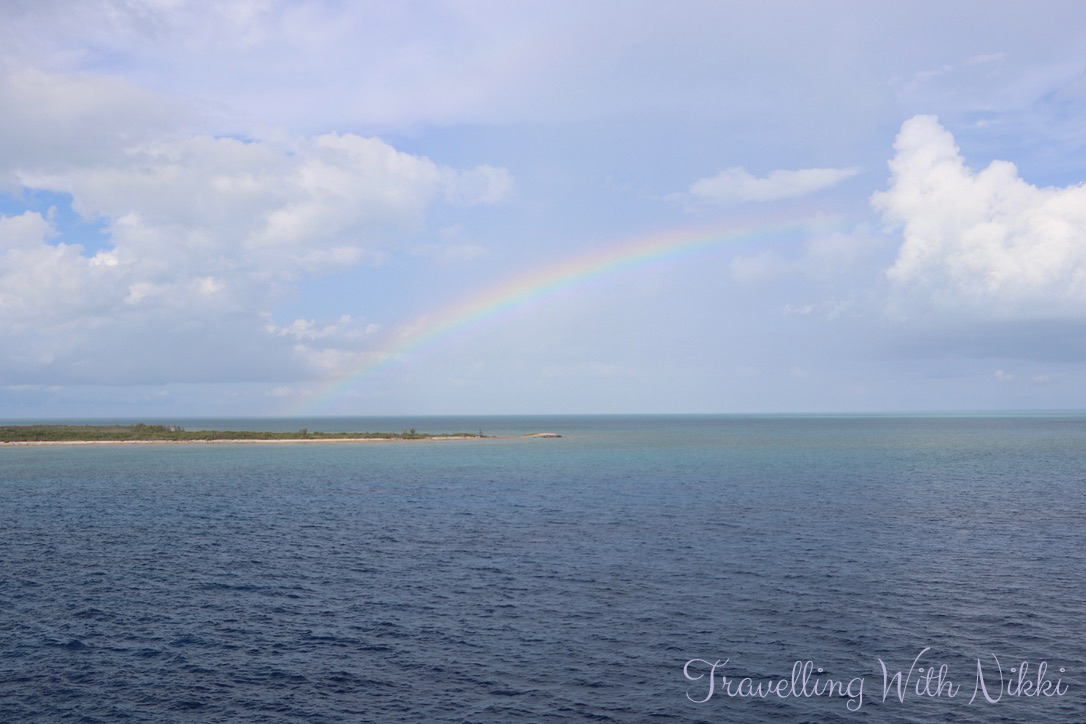We set sail just after 5:00pm and the view could not have been more beautiful as there was a rainbow and right at the end of it was Castaway Cay.