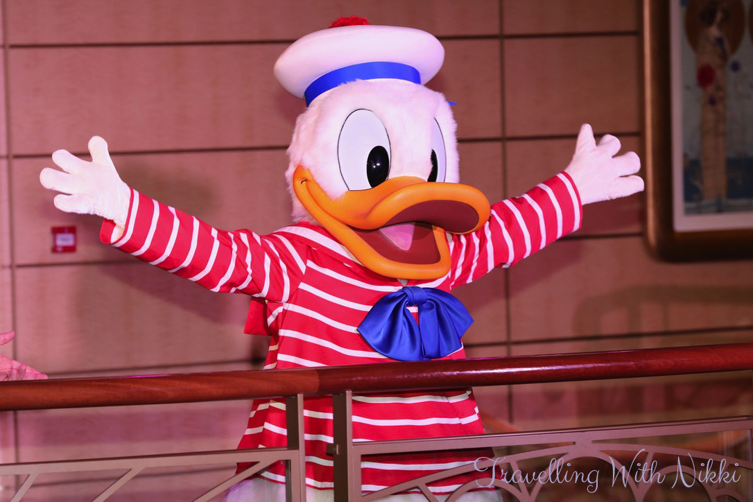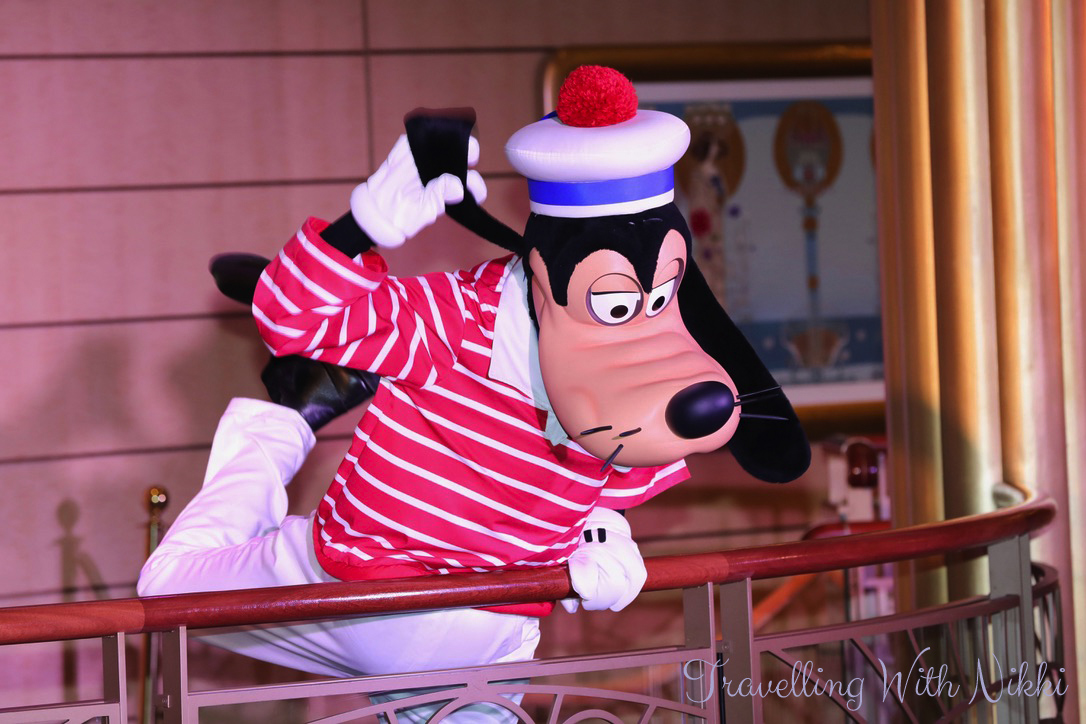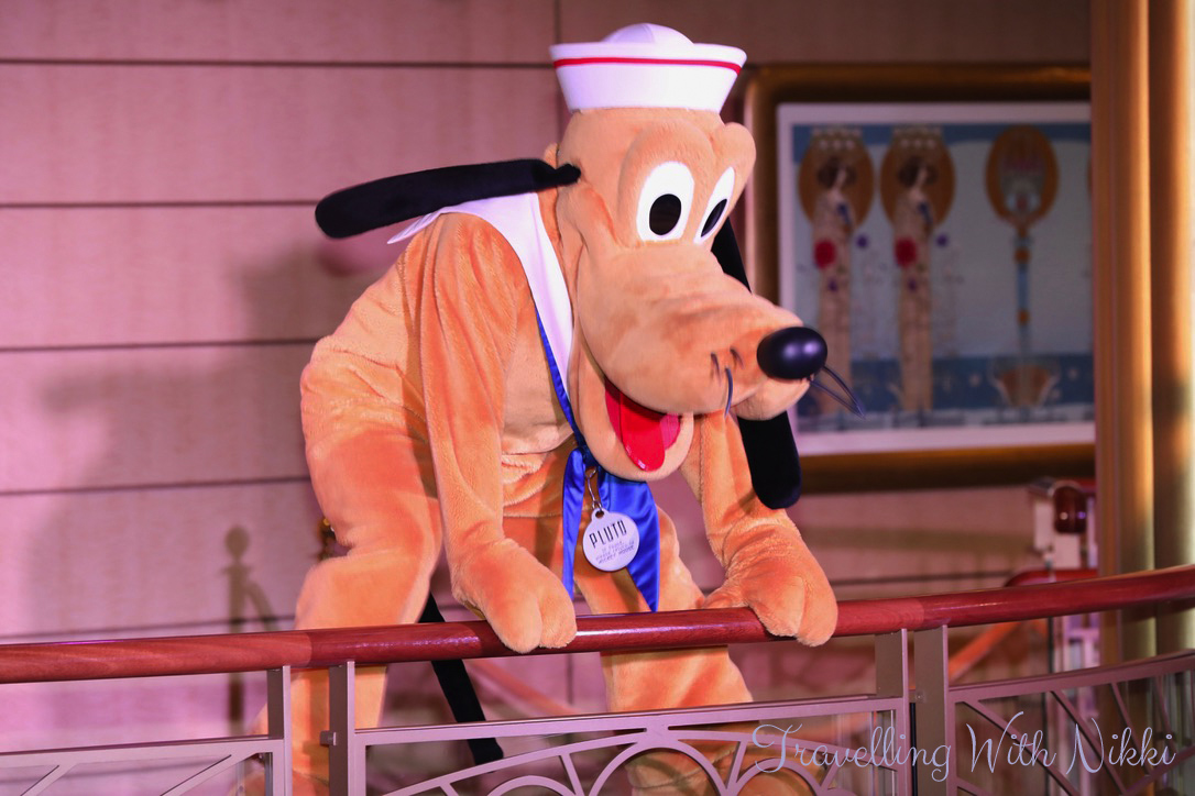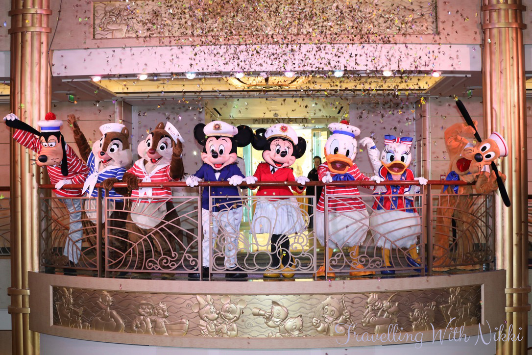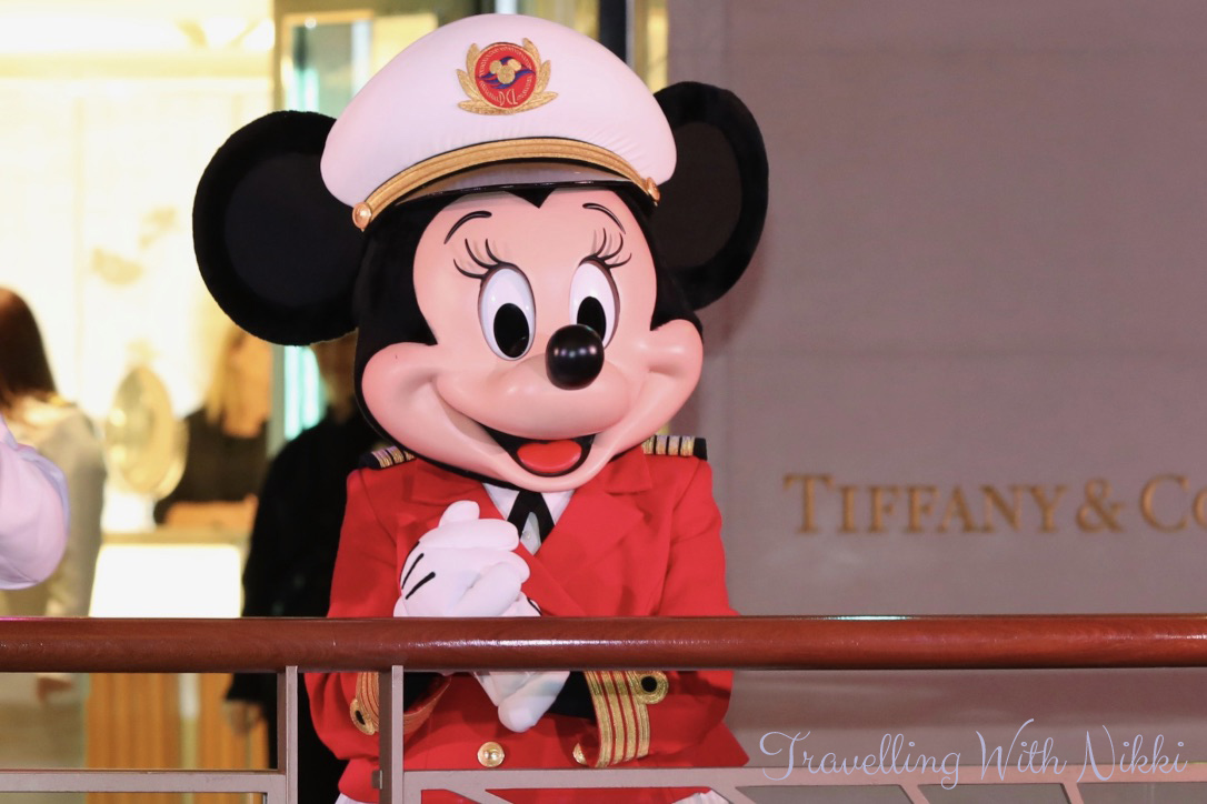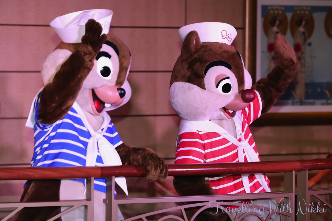 At 10:30pm Cinderella, Ariel, Tiana, Pluto, Goofy, Daisy, Donald, Chip and Dale, Captain Minnie and Captain Mickey arrive in the lobby atrium for you to get any last minute photos as this is the last time you will see the characters during the cruise as you will not see them the morning you disembark.