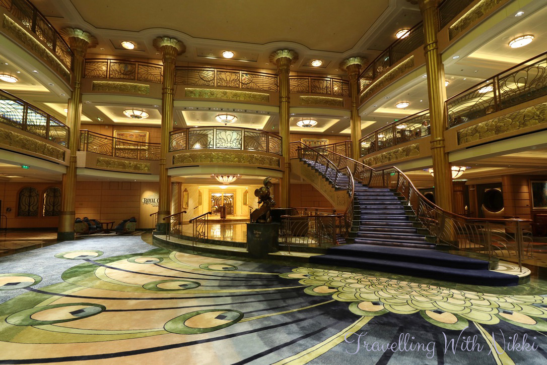 At 10:20pm we made our way to the lobby atrium to grab a spot for “Mickey and Friends” which was due to start at 10:30pm. It was still very quiet and there was no one waiting on Deck 4 to watch when we arrived. We were not sure what we would be seeing as we had been expecting to see “See Ya Real Soon” which is the normal farewell show on the Disney Dream and Disney Fantasy.