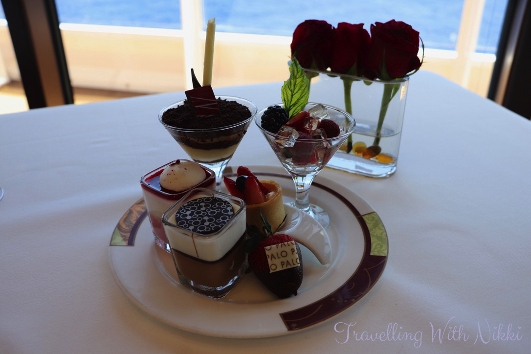 Once we arrived at Palo, we were introduced to Carole from Brazil who would be our server who took us to a table next to the window with a beautiful view overlooking the ocean. No sooner had we sat down than one of the staff from Remy found us and handed us each a personalised menu from our dinner earlier in the cruise. It was such a beautiful gesture and something which we will always remember.