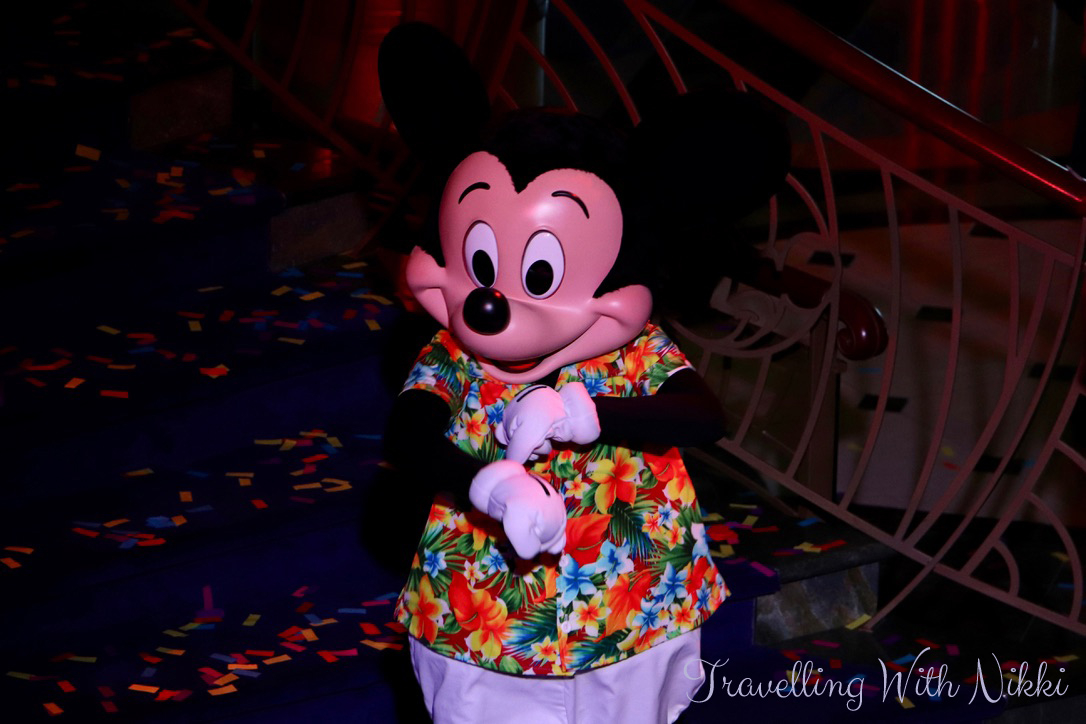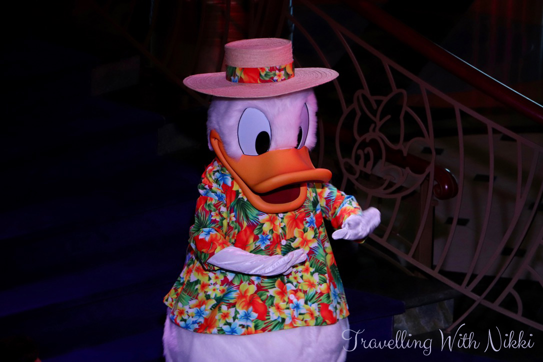 We walked down four decks to our stateroom to change our clothes before walking to the lobby atrium to watch the Character Dance Party which was due to start at 1:00pm. Minnie, Mickey, Chip and Dale, Goofy, Pluto, Donald and Daisy soon arrived and danced to Handclap, Walking on Sunshine, Dancing Queen, Everybody Dance Now, Danza Kuduro, Live While We’re Young, Hey Baby and Can’t Stop the Feeling.